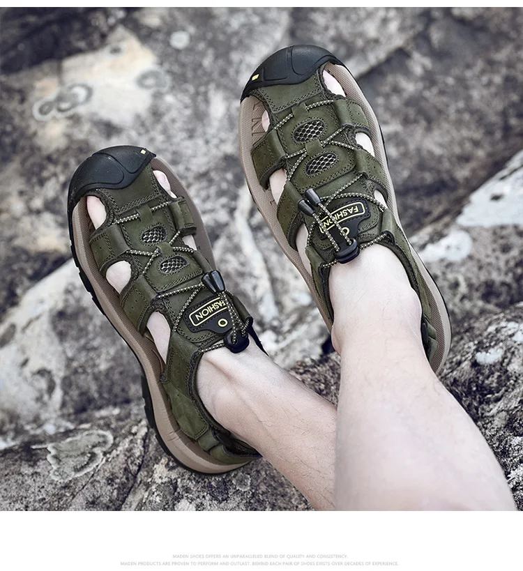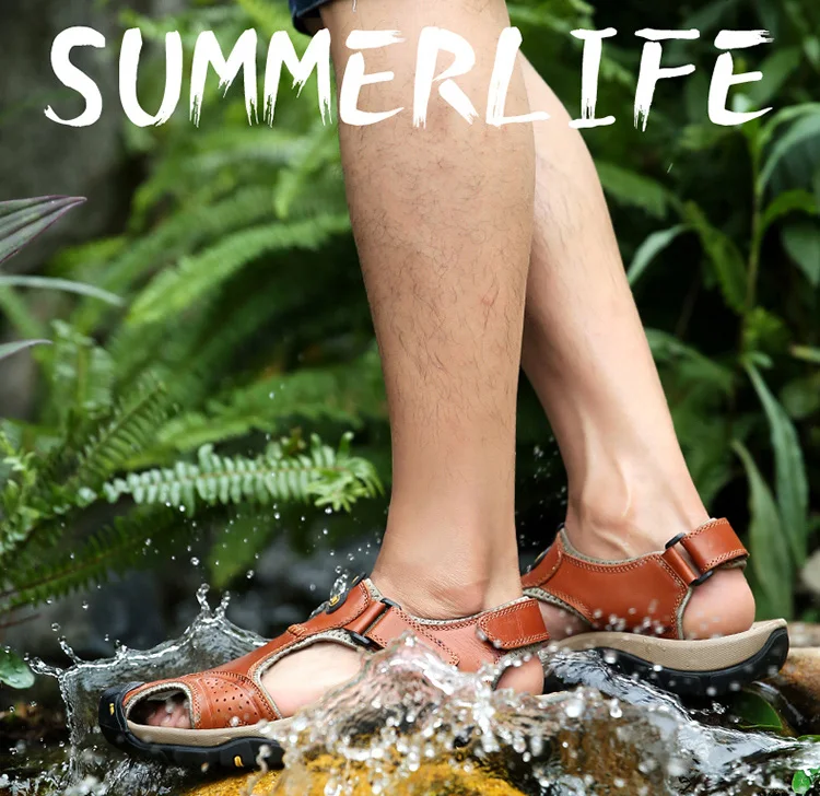 Мужские сандалии из натуральной кожи, Нескользящие уличные спортивн...