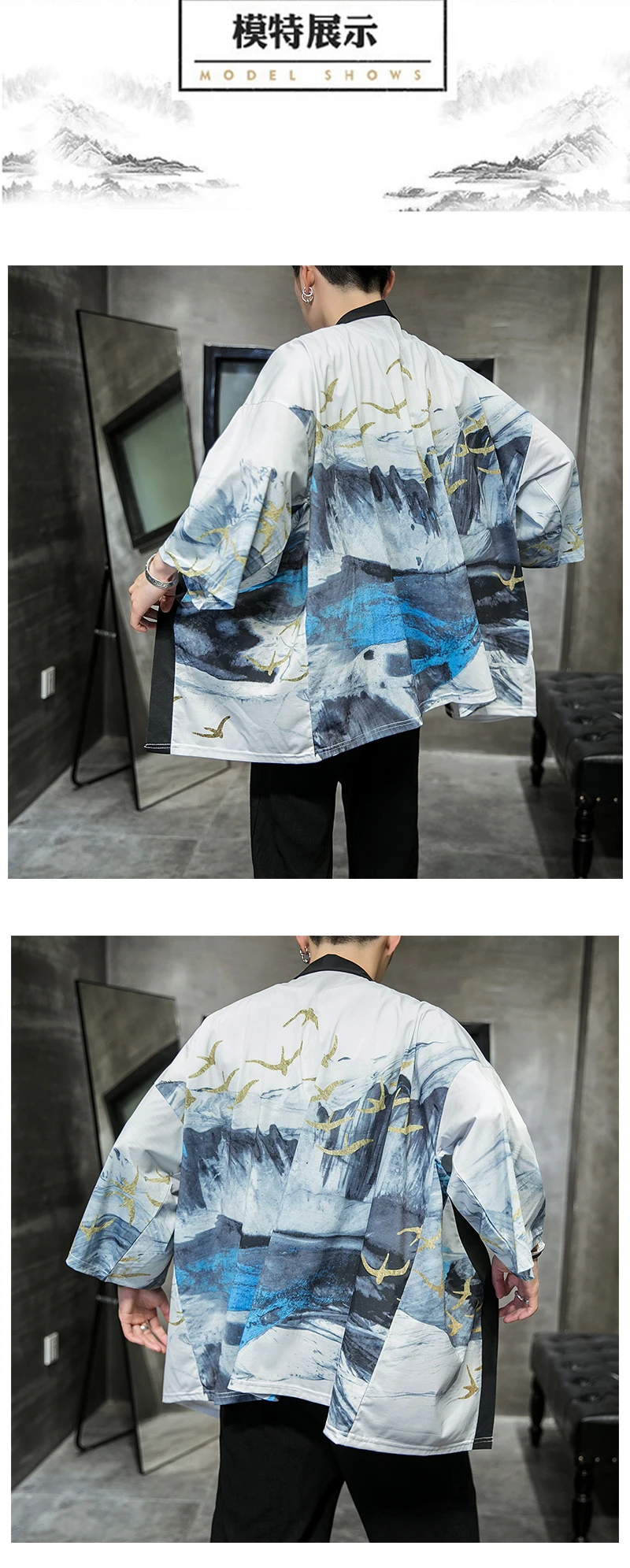 2020 летние топы в китайском стиле, тонкое солнцезащитное пальто, модный костюм Тан ханьфу, халат в древнем стиле Харадзюку, кимоно, мужская одежда
