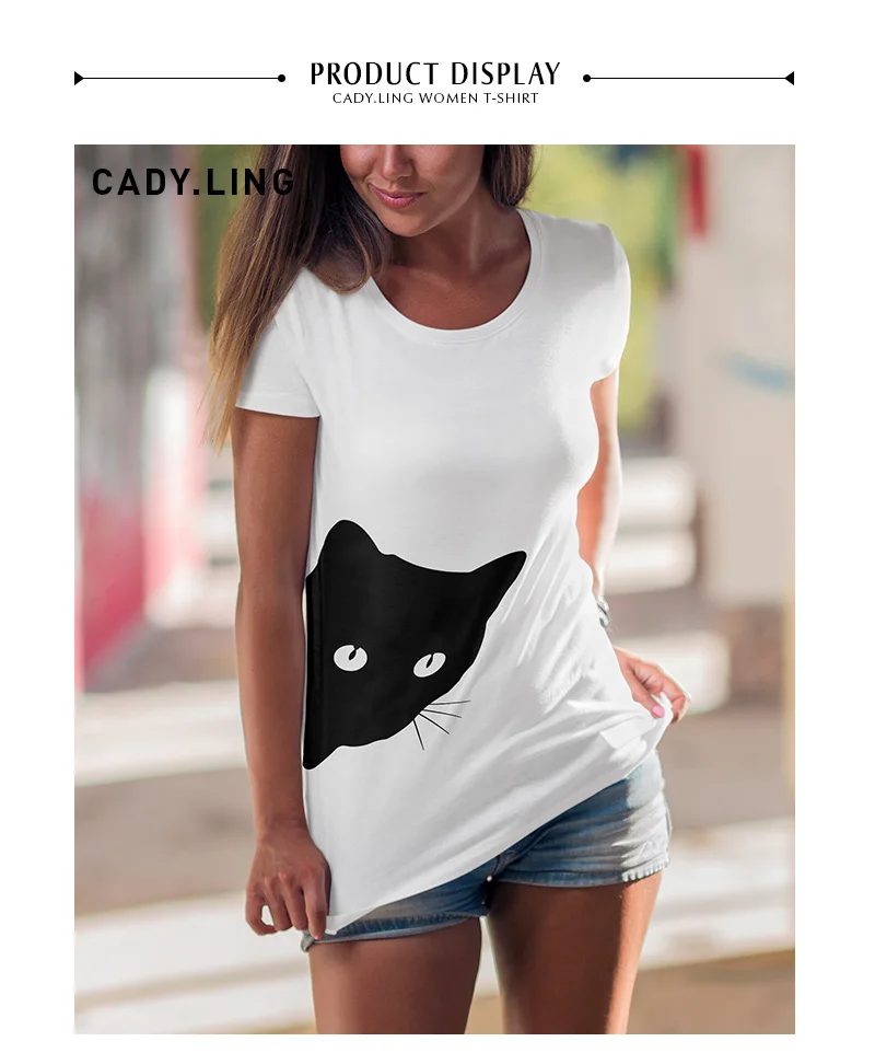 Черная футболка в стиле Харадзюку, женские топы, футболка с принтом в виде мультяшного кота и лица, женская футболка, Повседневная футболка, топы с круглым вырезом в стиле рок