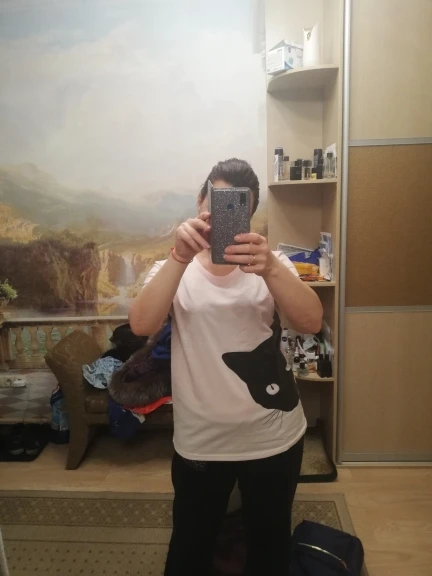 27 декабря сделала заказ, получила в магазине Пятёрочка 11 января. Футболка отличная, хлопок 100%. Единственное, сомнения на счёт рисунка. Котэ сделан либо краска, либо клеенчатая наклейка. Я плохо разбираюсь. Размер подошёл отлично. Мои параметры рост155 ог90от74об96 вес 60 плечи 42. Продавцу спасибо за хорошее качество товара