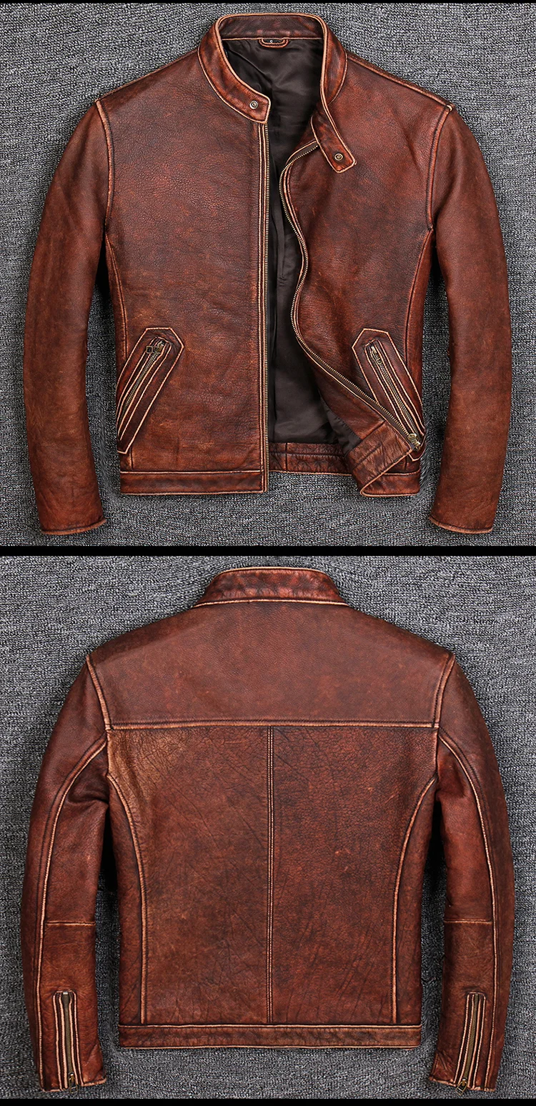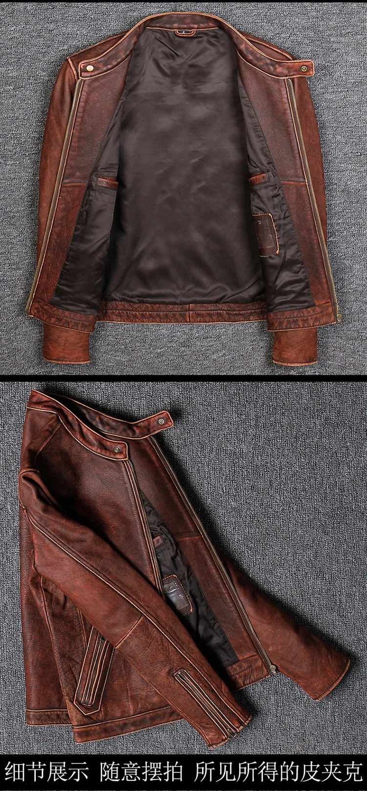 Куртка из воловьей кожи в классическом стиле, мужская одежда из 100...