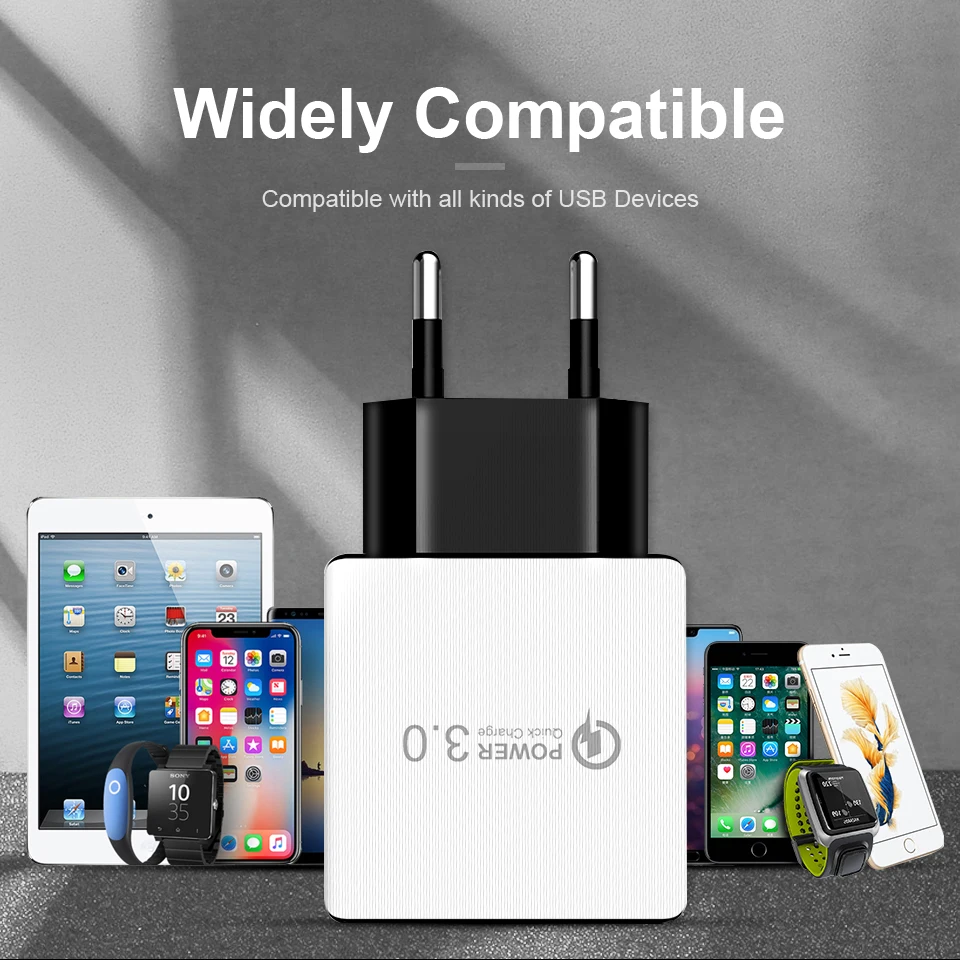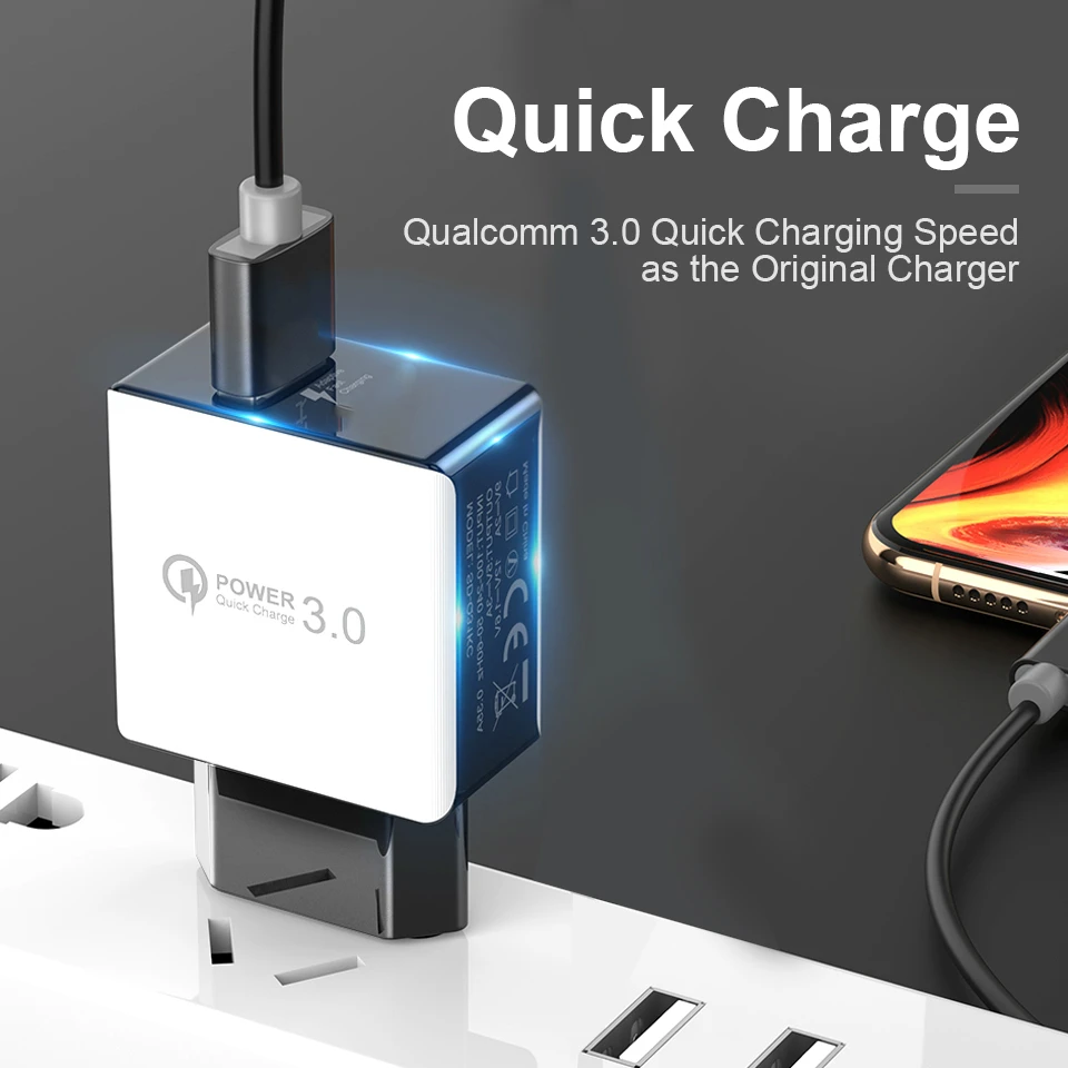 Быстрое зарядное устройство QC3.0 с европейской и американской вилкой, зарядка для xiaomi, samsung, 5V3A18W, с одним портом USB, зарядная головка из АБС огнестойкого материала