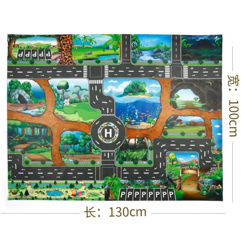 Портативный Автомобиль 130*100 см, городская сцена, Дорожная карта, игровой коврик, обучающие игрушки для детей, дорожный ковер, автомобильные аксессуары