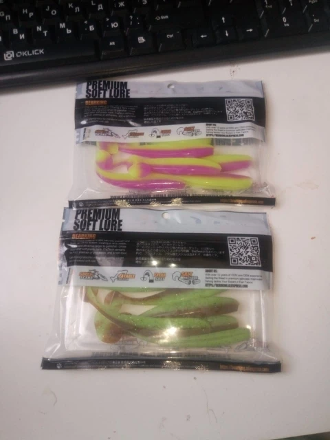 Доставка - чуть дольше месяца. Резина мягкая, хвостик очень подвижный. Имеется слабый запах креветочного аттрактанта, соль в теле приманки (специально попробовал на зуб:-). Щуке и судаку, думаю, должны понравиться. Единственный минус - неаккуратно откушены литники со стороны "головы" приманки. Если что поймаю - дополню отзыв.
