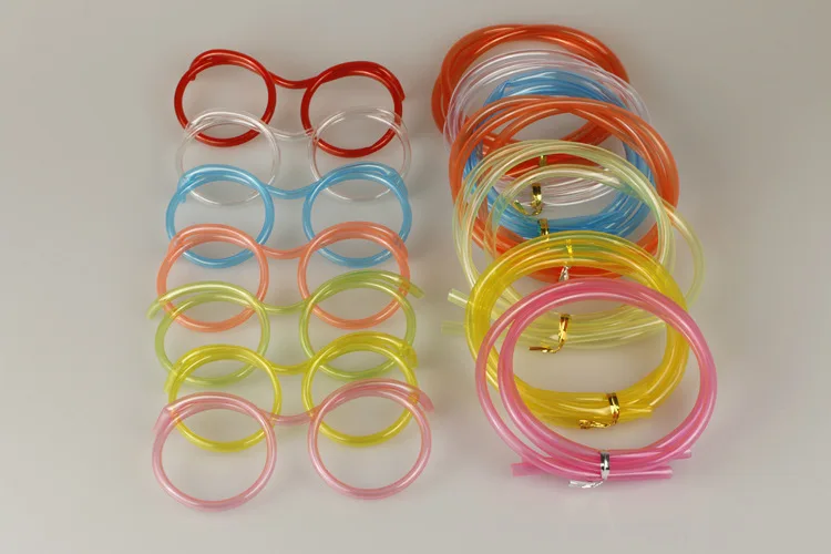 Забавные мягкие Пластик соломы очки гибкий питьевые соломки, трубча...