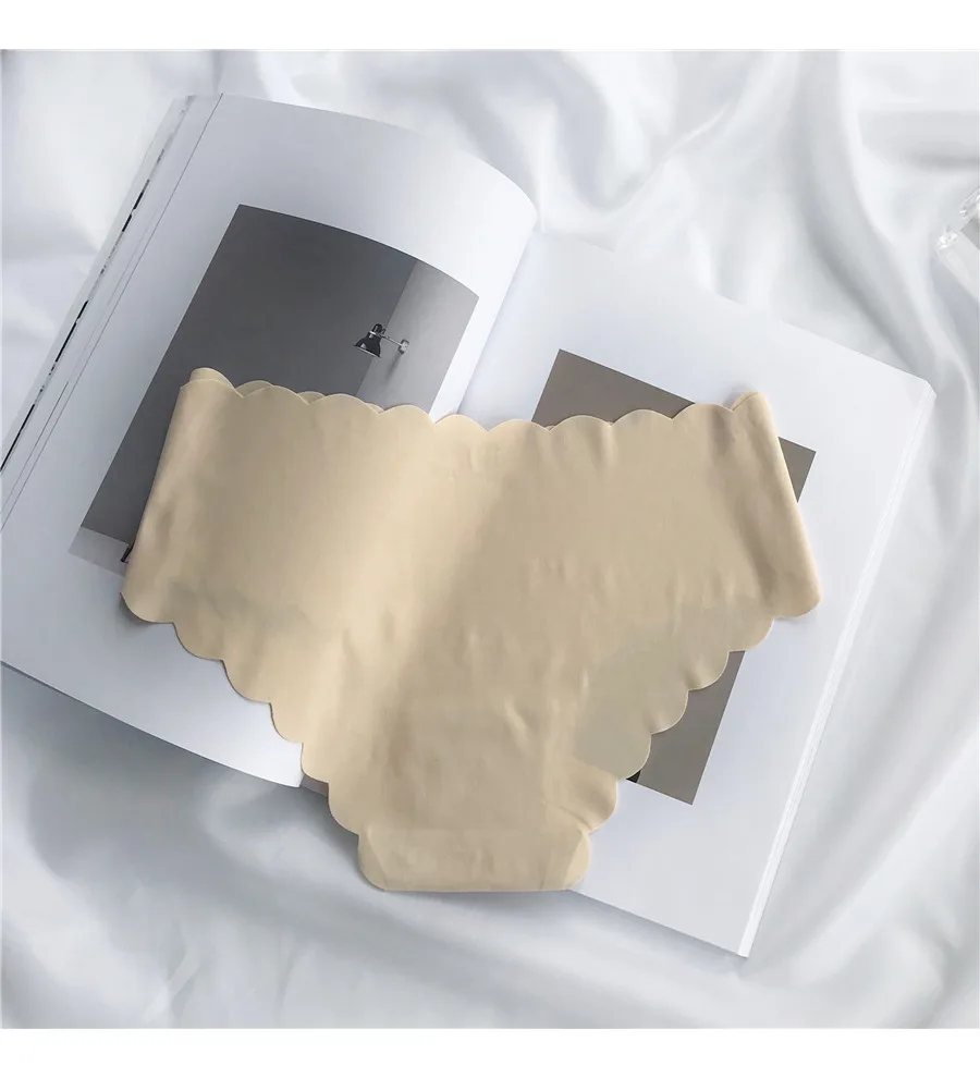 Женские бесшовные трусики с рюшами, однотонные хлопковые трусы брифы, удобное дышащее нижнее белье