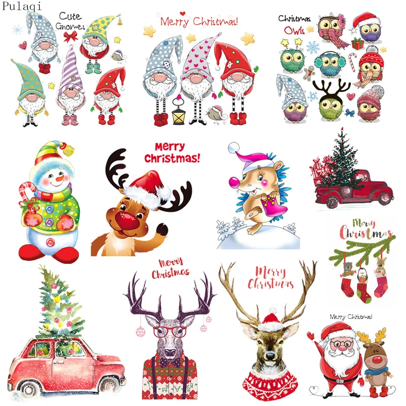 Pulaqi рождественские пластыри тепловые утюжки на пластыри Санта Клаус полосы передачи Плавная одежда наклейки на одежду аппликация сделай сам