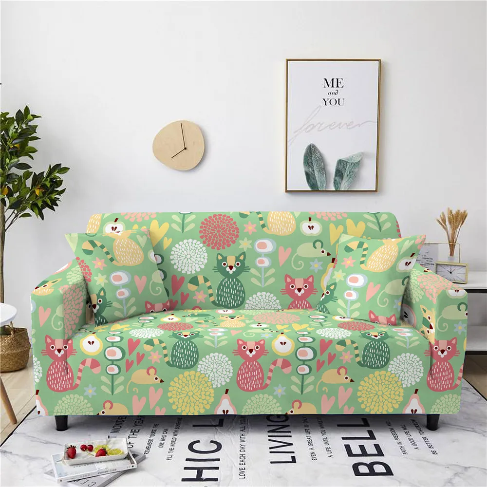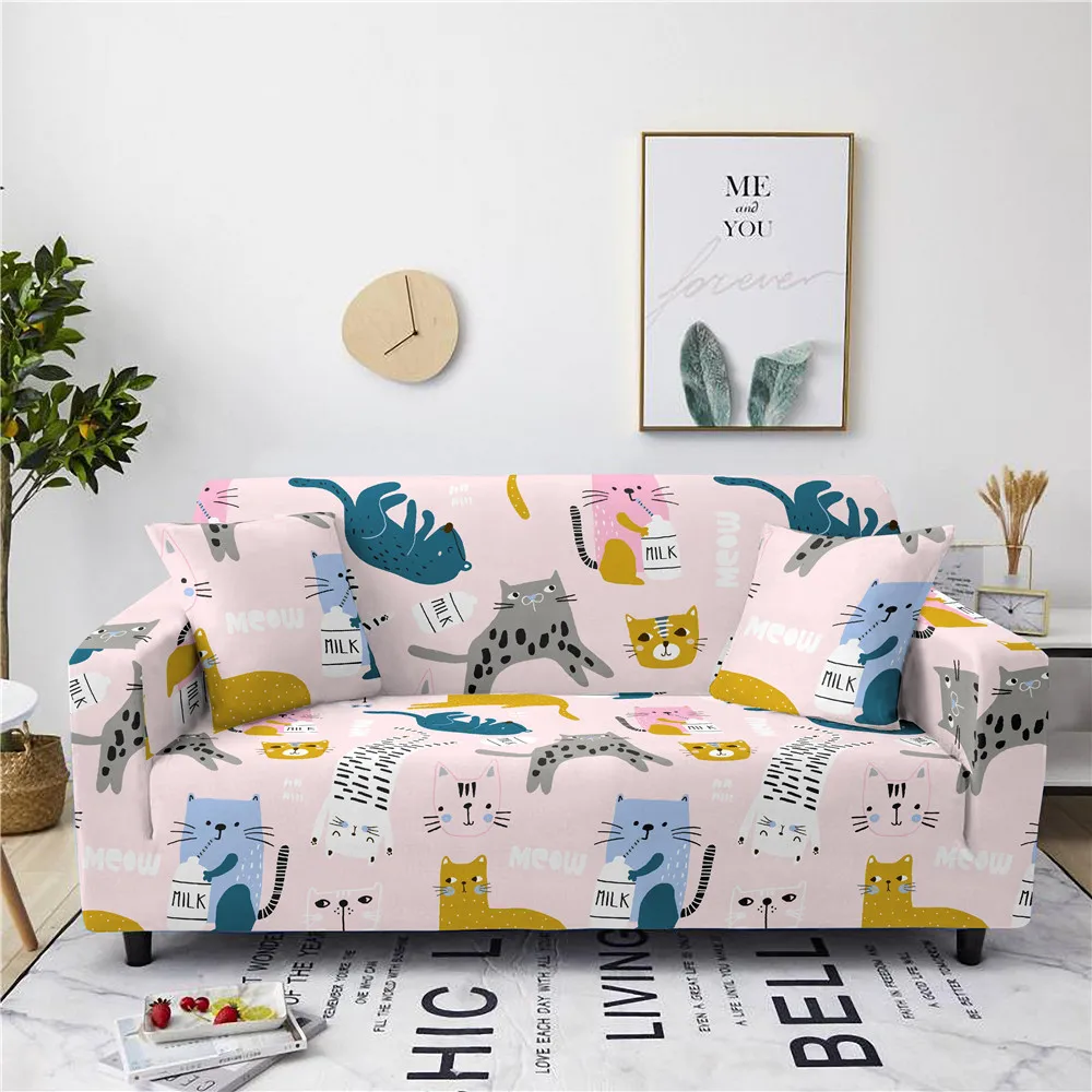 Эластичный чехол для дивана с мультяшными животными, Нескользящие Чехлы для угловых диванов в гостиную, L-образный чехол для дивана