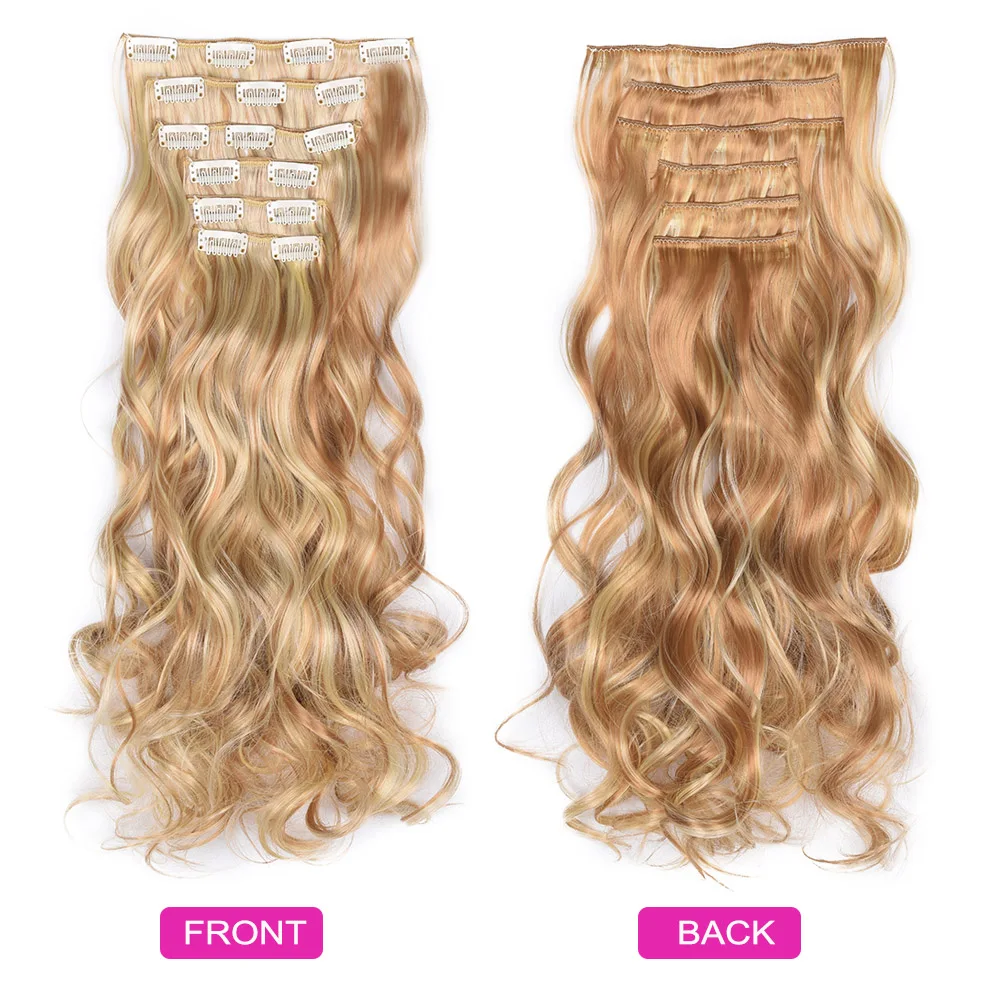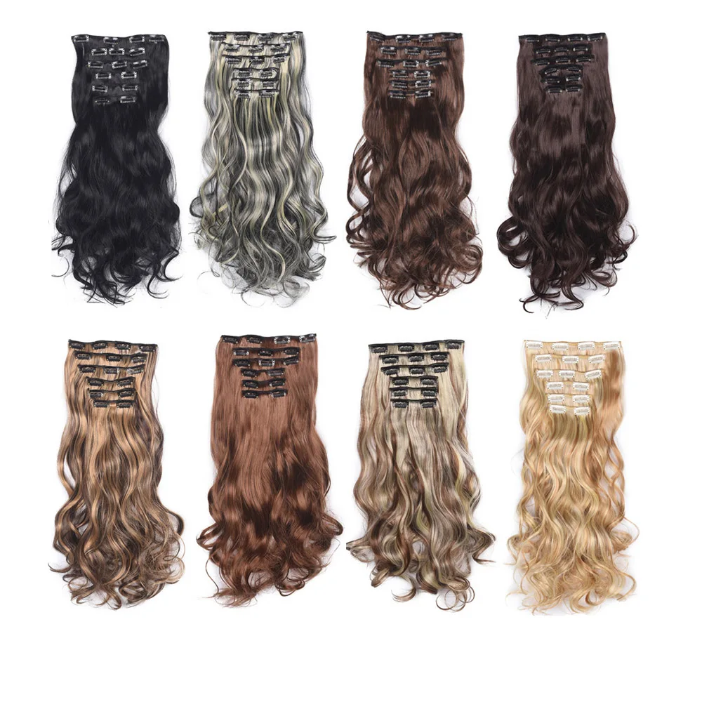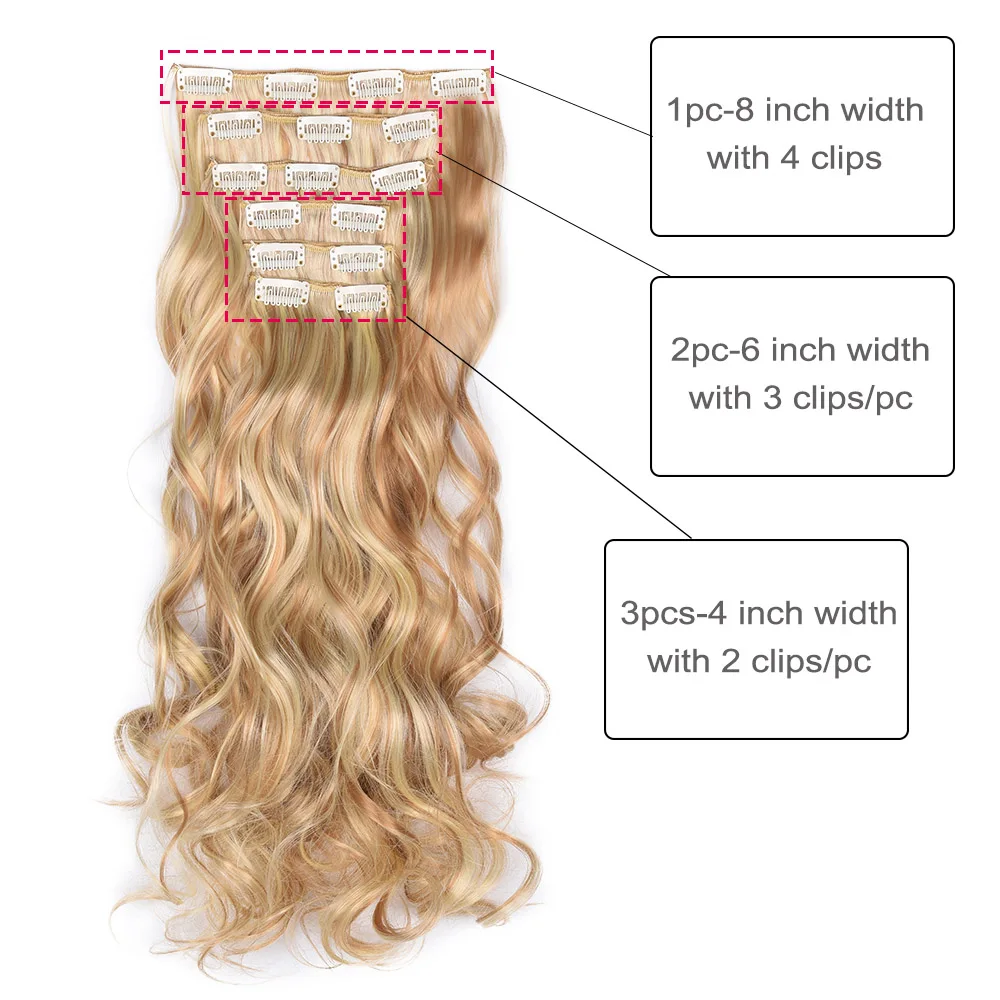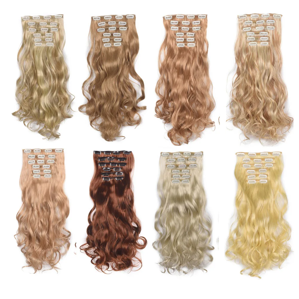 Накладные волнистые волосы для наращивания на клипсе, 22 дюйма, 140 г, 6 шт.компл., синтетические вьющиеся волосы в комплекте, термостойкие