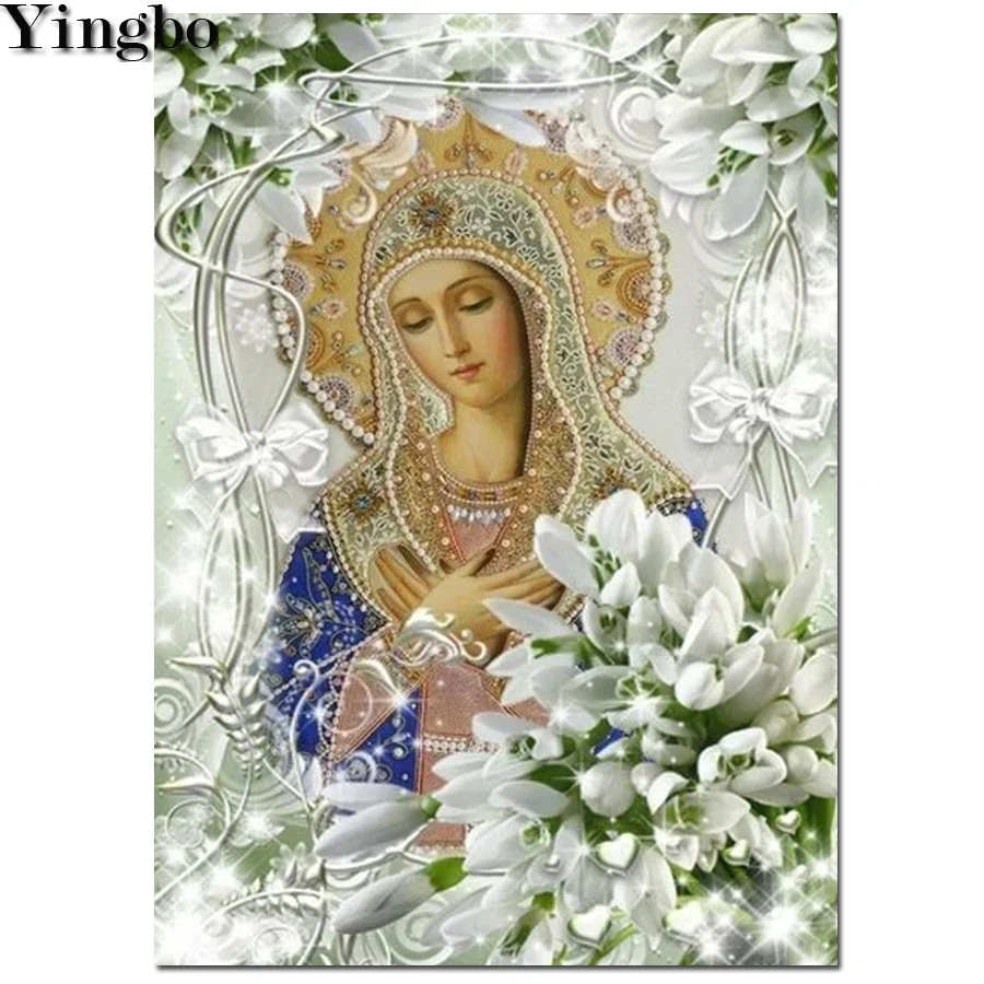Новый Бриллиантовая вышивка, религиозная Дева Мария Лилия 3D DIY алмазная живопись узор Мозаика из полимера, круглая, алмазная украшение для дома