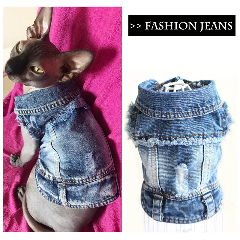 Весенняя серия джинсовых жилетов для кошек, Модная Джинсовая одежда для кошек, Сфинкс, повседневное Ковбойское пальто, куртка, костюм для домашних животных XS-XXL 10E