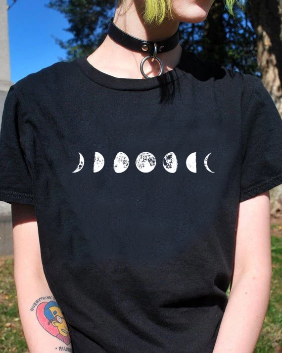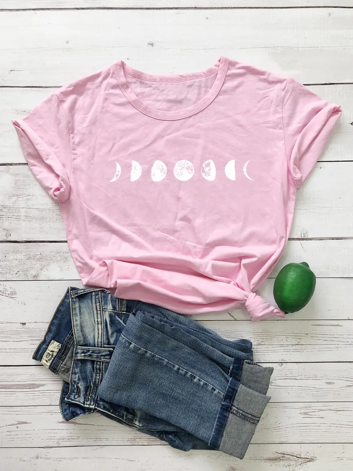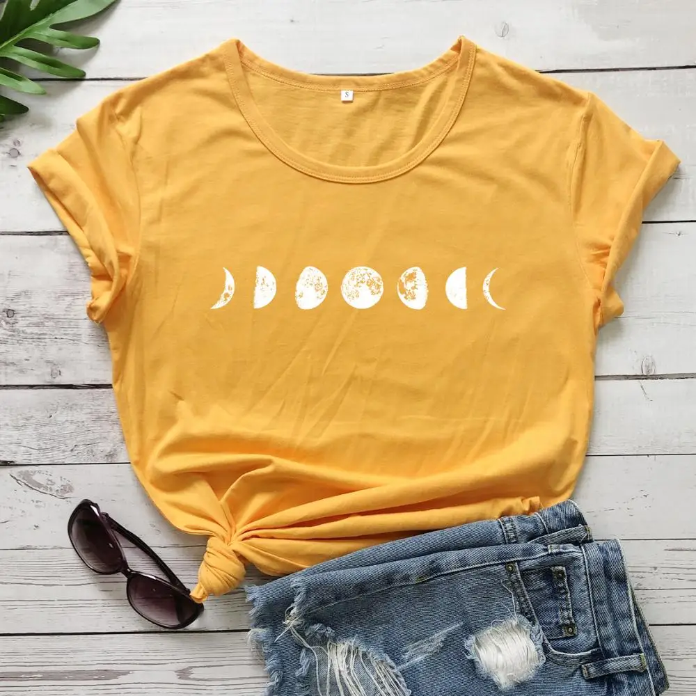 Милая футболка moon phase из 100% хлопка, забавная Винтажная футболка унисекс в уличном стиле, графика, гранж, tumblr, Женская Повседневная модная футболка, топ