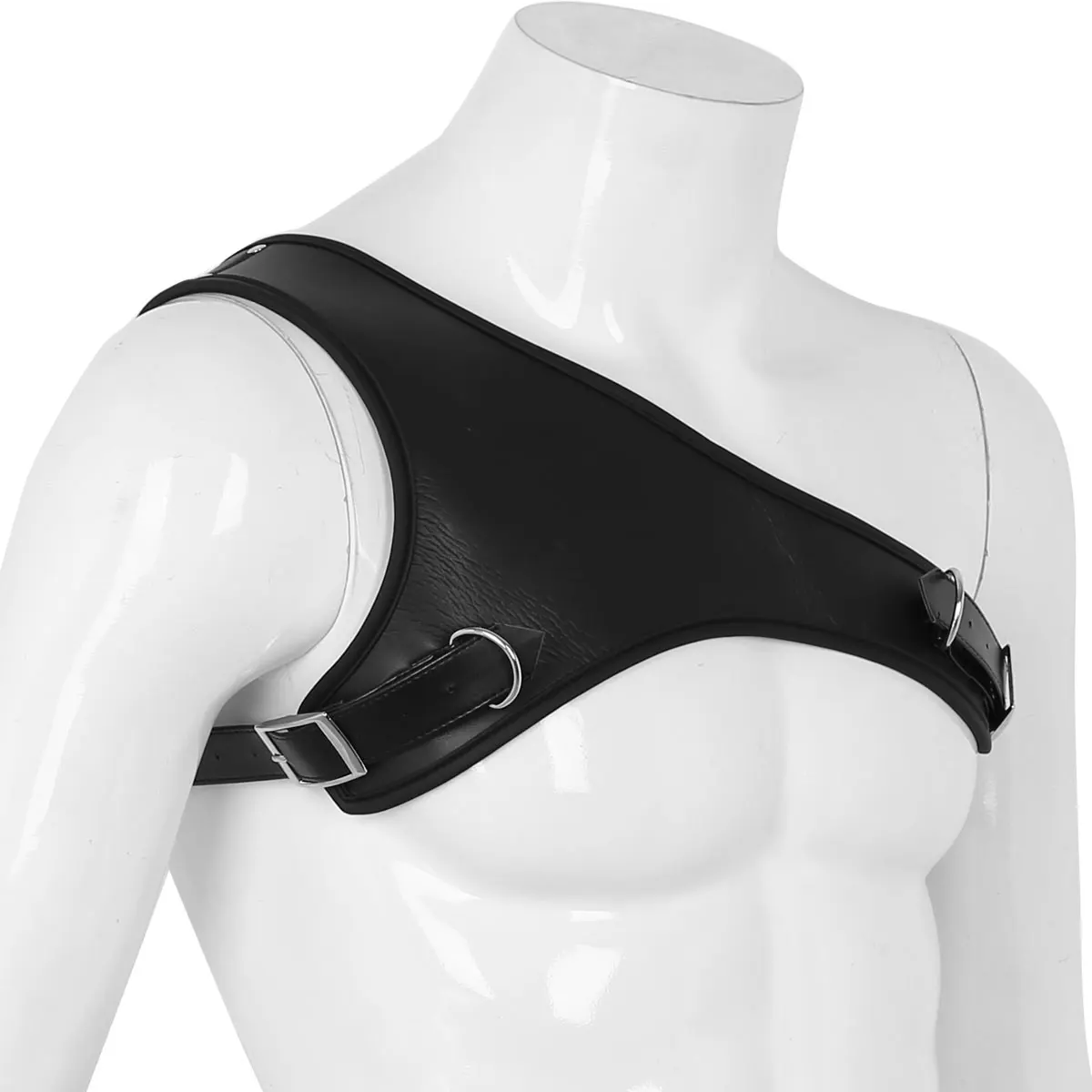 Особенности: Мужские нагрудные ремни, свободный размер. Изготовлен из кожи, мягкой и эластичной ткани, легко носить. Дизайн на одно плечо, может регулироваться в соответствии с размером вашего тела, с металлической пряжкой. Превосходное растяжение для комфорта, подчеркивает грудь и мышцы рук. Идеально подходит для ночного белья и самостоятельного удовольствия, ночного клуба и некоторых особых вечеринок.