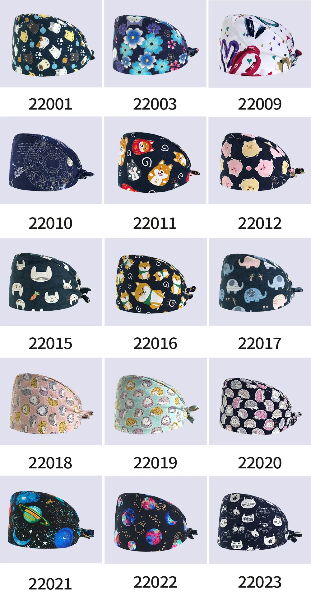 Шапка для медсестры с цветочным узором, регулируемая шапка с разным...