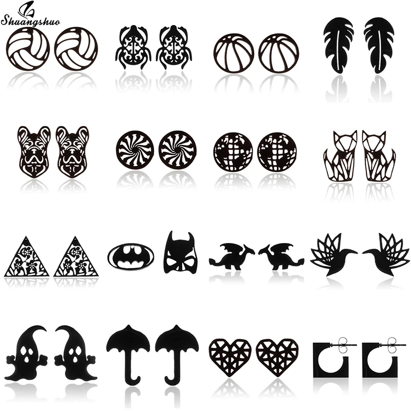 Серьги-гвоздики Shuangshuo в стиле бохо для мужчин и женщин, крошечные серьги в стиле панк и ювелирные изделия из Америки в стиле бохо с черным животным динозавром, бижутерия