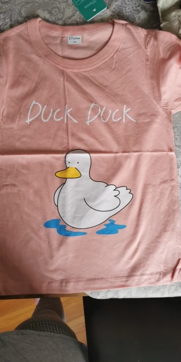 Заказала у этого продавца 4 вещи, всё пришло чётко, во время! Футболка хлопковая, цвет соответствует фото продавца, но вот рисунок выполнен резиновым покрытием((( Боюсь, после стирки потрескается. Замеры в см смотрите на фото. Я покупала 140 размер. Посылка отслеживалась, шла 27 дней.