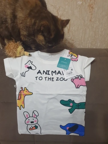 Крутая футболка) по цене примерно так же, как в магазине, но там я таких принтов не видела. Пришла в упаковке, рисунок проложен дополнительно бумагой. Ткань приятная, ну вроде хлопок, как указано. Плотная, но мягкая. Постираю, поглажу, дополню отзыв.