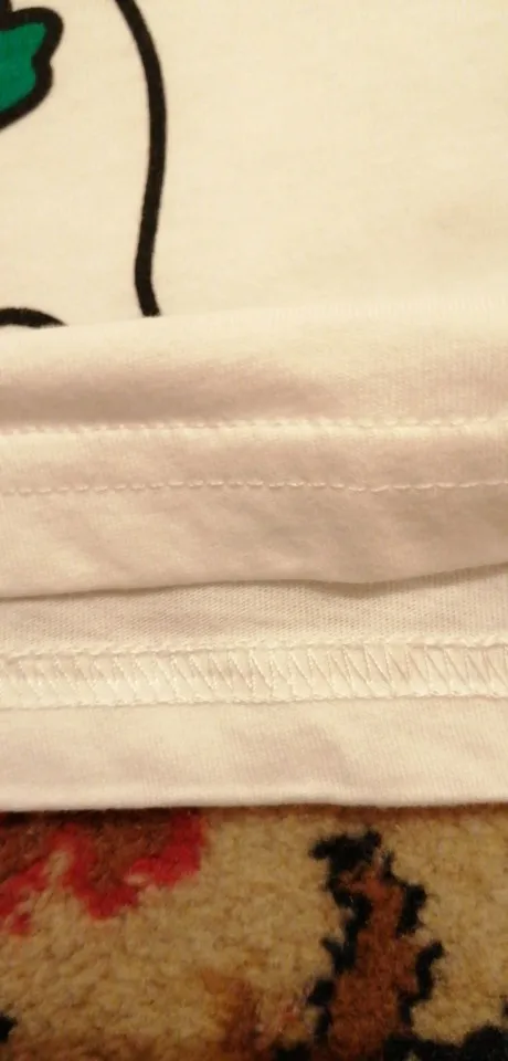 Сшита нормально. После первой стирки не полиняла, не растянулась, рисунок не слез.