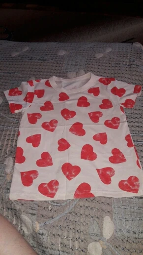 На рост 117 не худенькую девочку в самый раз. Думала будут чуть посвободнее. Но в целом все отлично, качество классное, после стирки рисунок не испортился. Показалось, что футболка с сердцами самая свободная