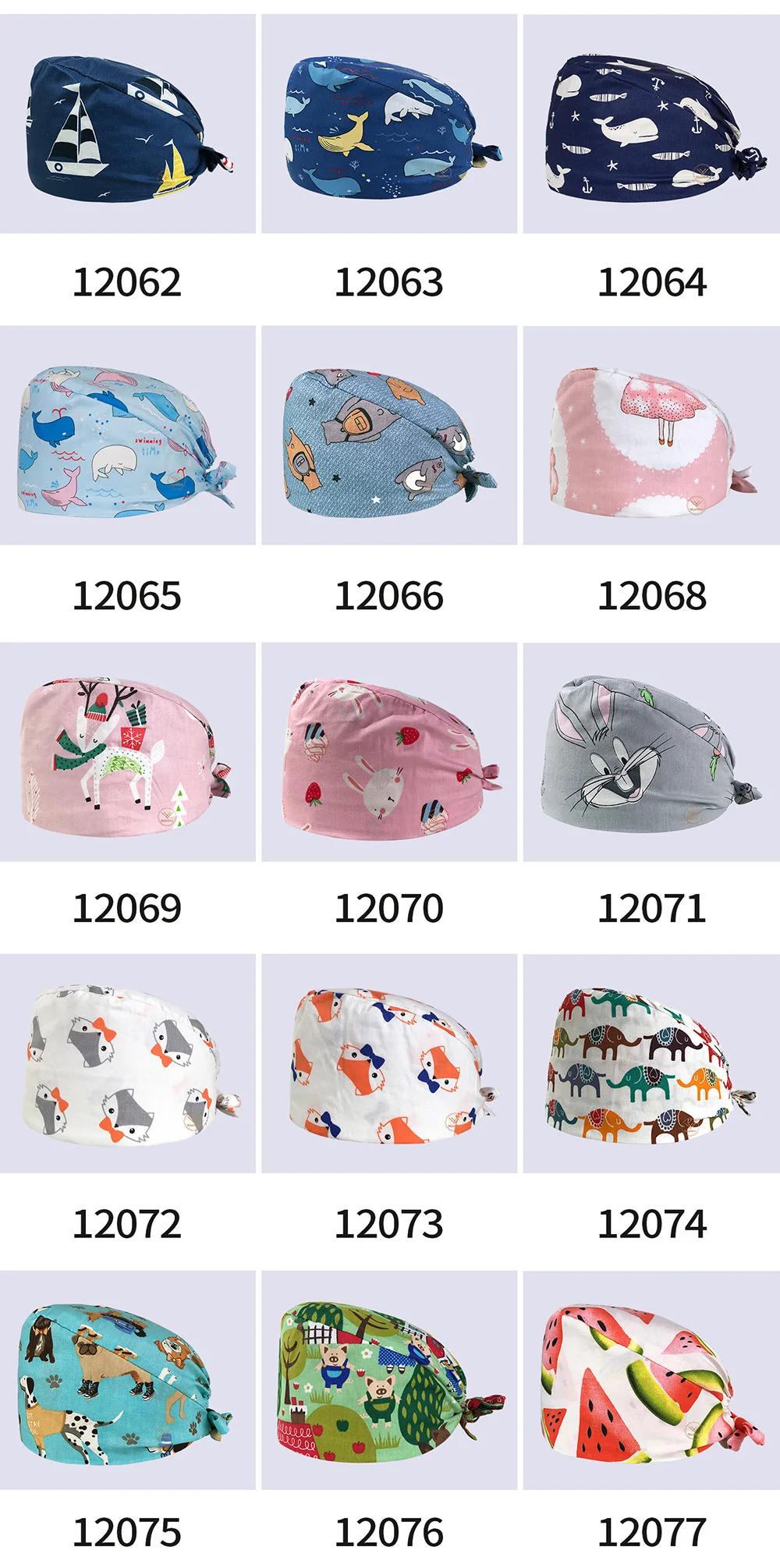 Хлопковая шапка-скрабы с принтом, шапка для оператора лаборатории, ...