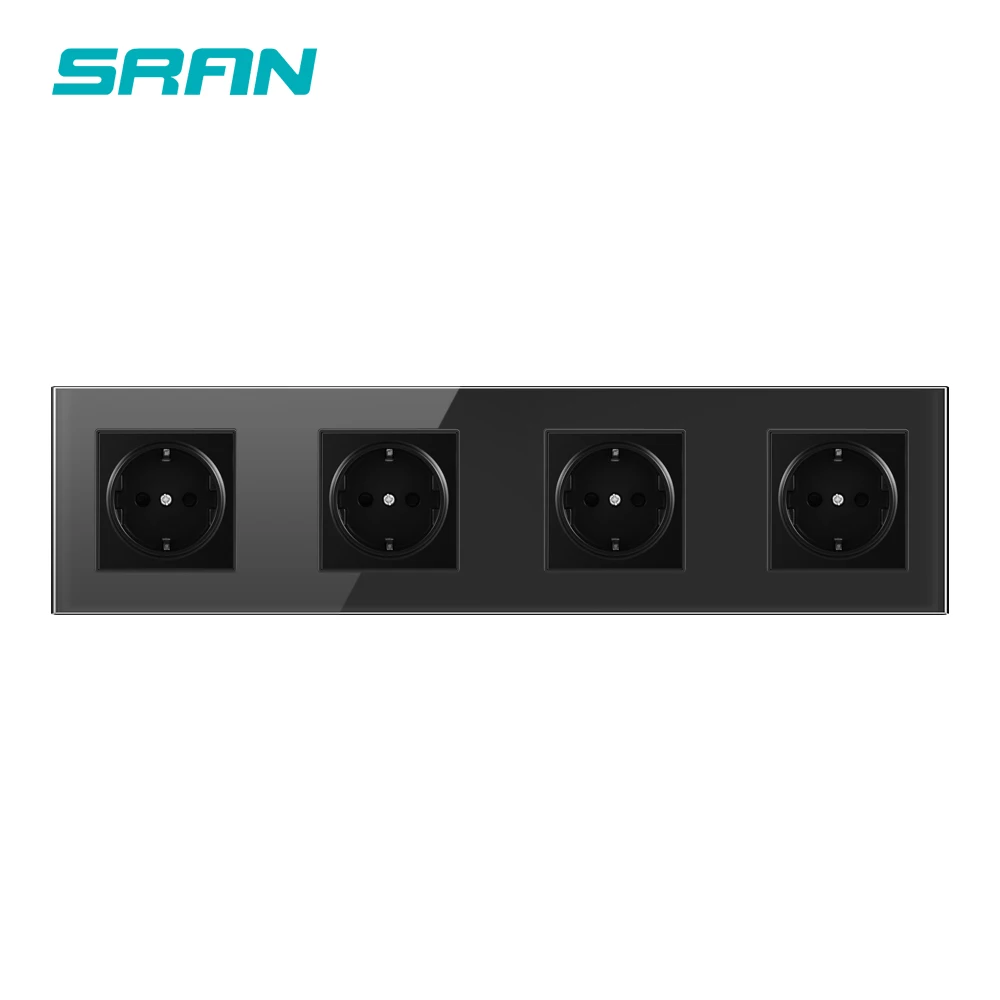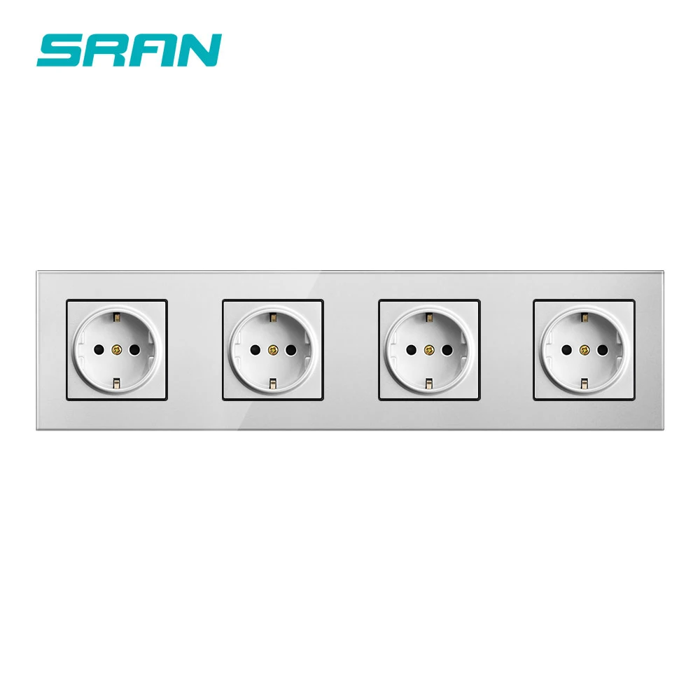 Настенная прозрачная стеклянная панель SRAN, 4 рамы, розетка европейского стандарта, 16 А, заземленная четырехъядерная розетка 344 мм * 86 мм