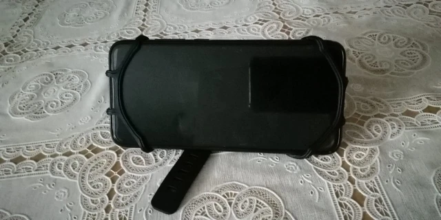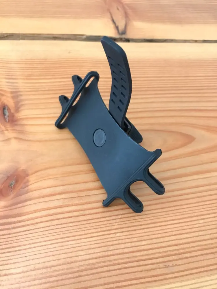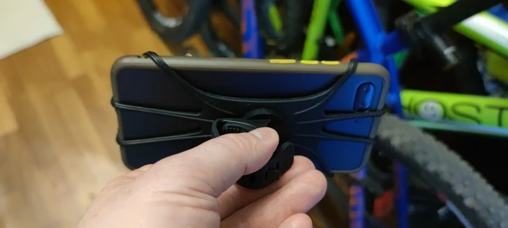 Используется на iPhone12. Резиновый ремешок закрывает переднюю камеру, поэтому распознавание лица не будет работать. Кроме того, качество хорошее и хорошо держится на моем brompton foldie.