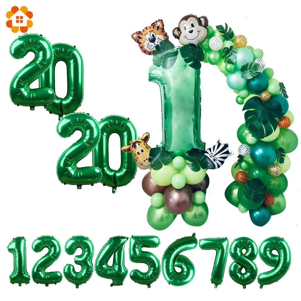 1 комплект Воздушный шар арочный комплект зеленый воздушный шар "Конфетти" джунгли для вечеринки в стиле сафари Baby Shower Hawaii Party Decoration Зеленый цифровой фольгированный шар