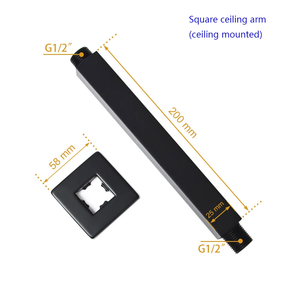 Черная душевая лейка, Настенная и потолочная латунная душевая лейка для ванной, черная квадратная и круглая душевая лейка