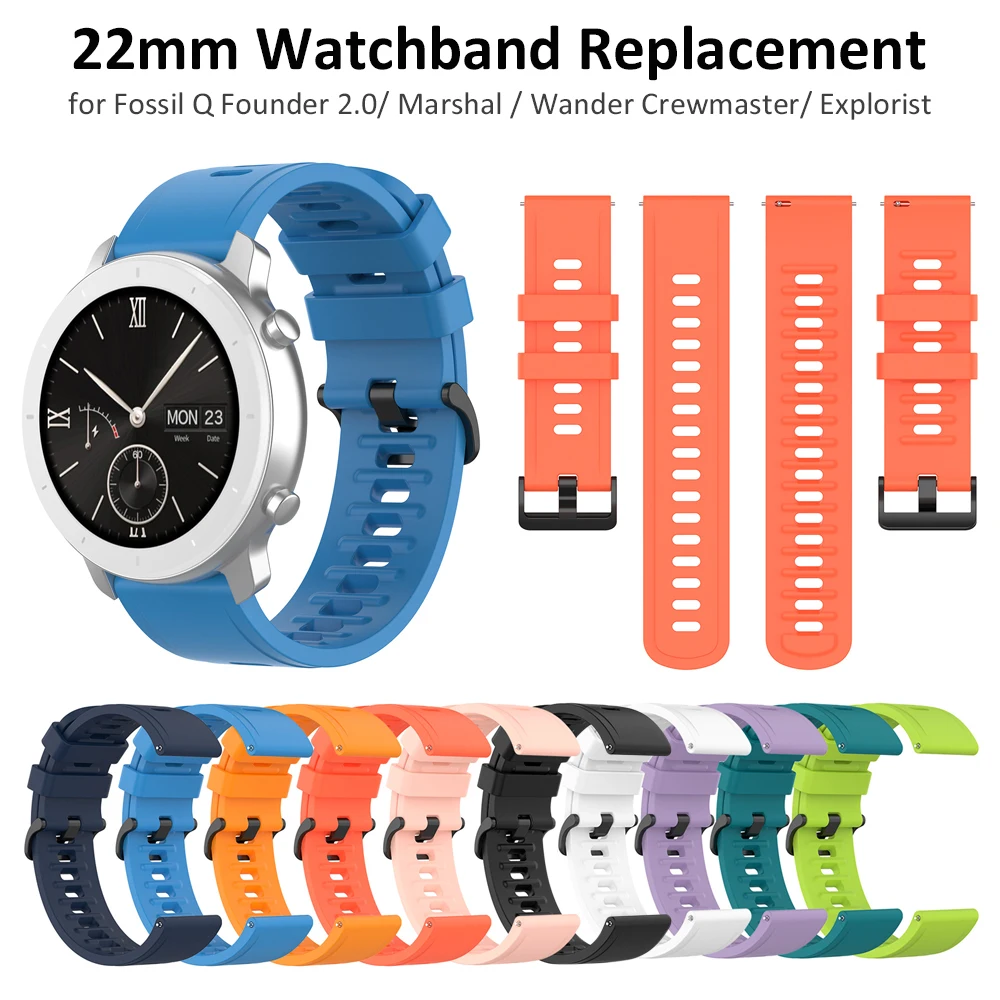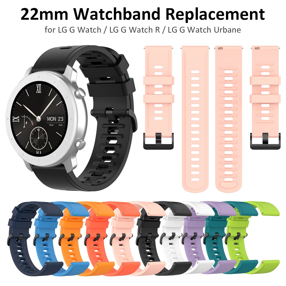 Ремешок силиконовый для LG G Watch Urbane Asus Zenwatch 2 Fossil Gen 5 Carlyle Pebble Time Vivoactive 4 Ticwatch Pro, 22 мм