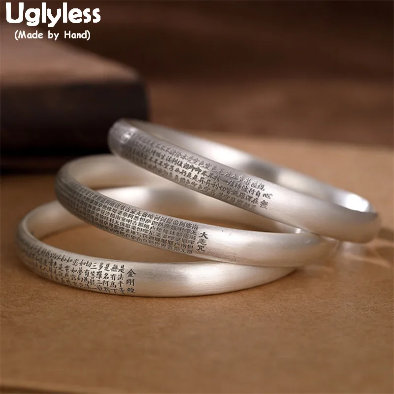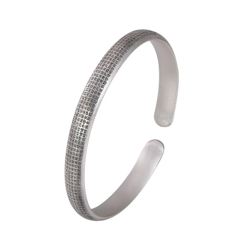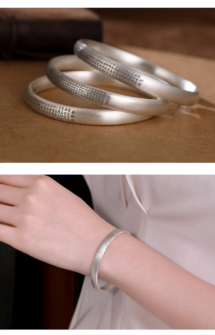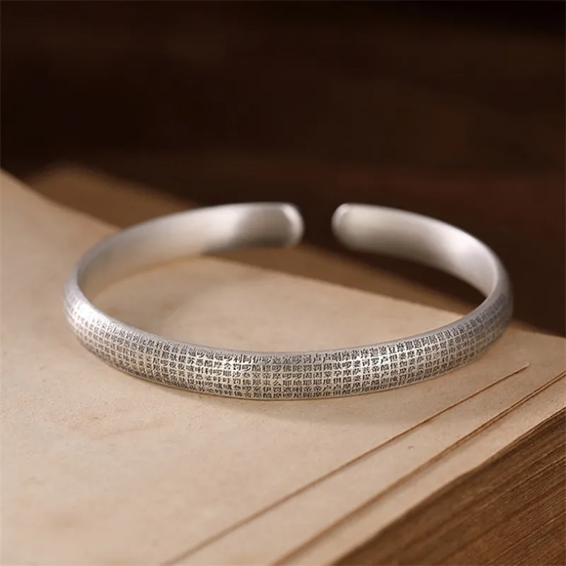 Классические безглицевые браслеты Buddhistic для женщин, однотонные браслеты из чистого серебра 999 пробы, ювелирные изделия с сердцем, сутрой, бриллиантами, сутрой, прекрасное сострадание