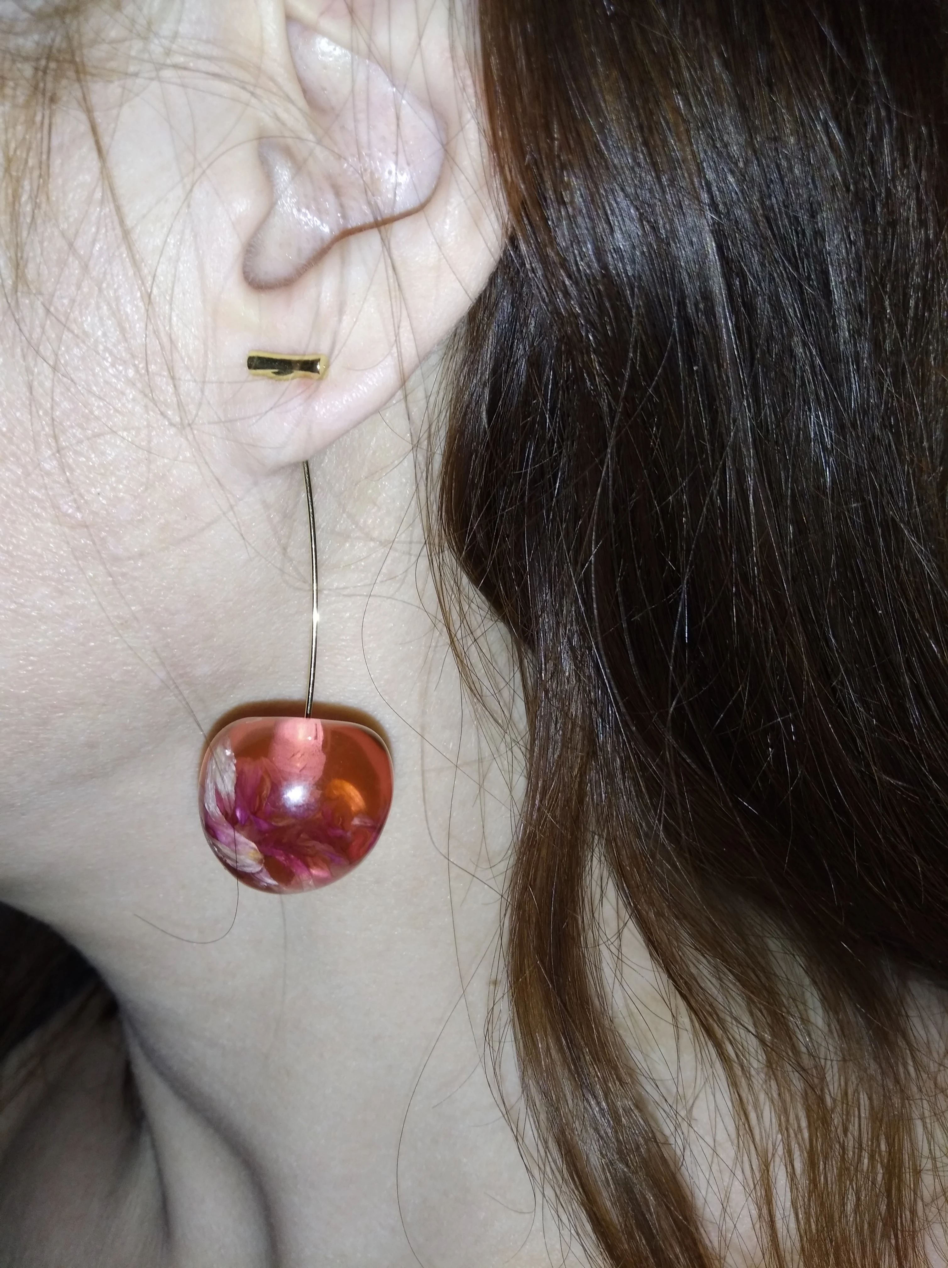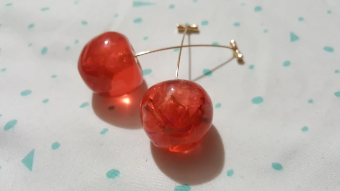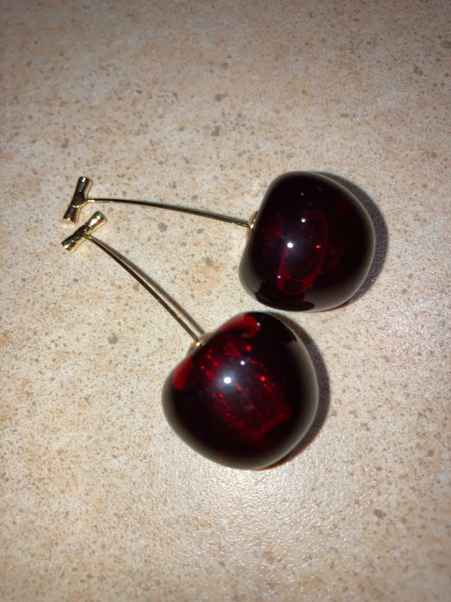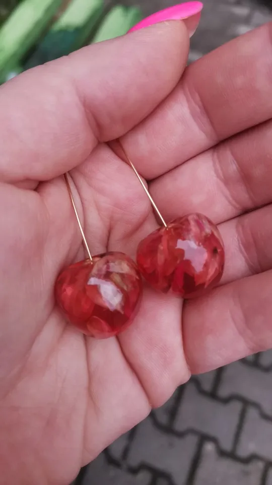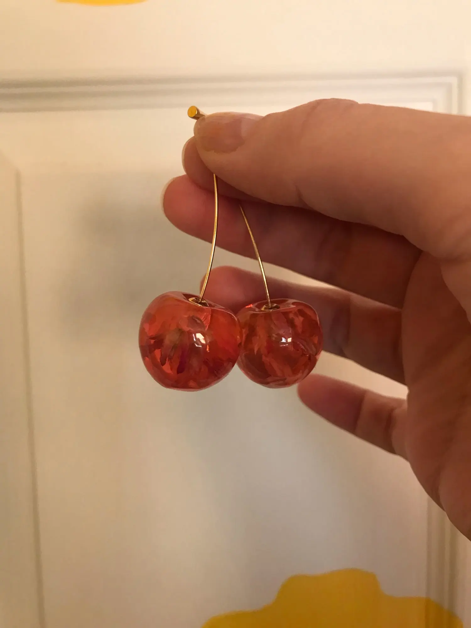 these cherry earrings are so cute and are exactly like the ones I have seen all over social media. it looks like resin with a flower inside, super pretty ❤️