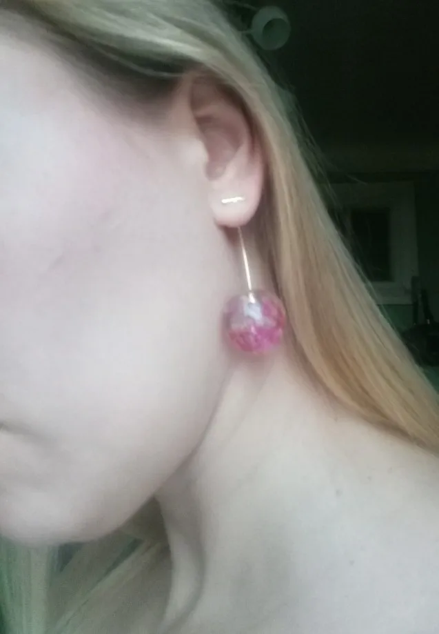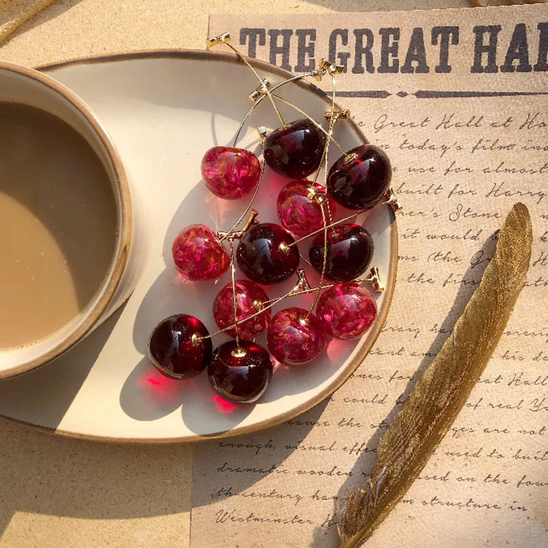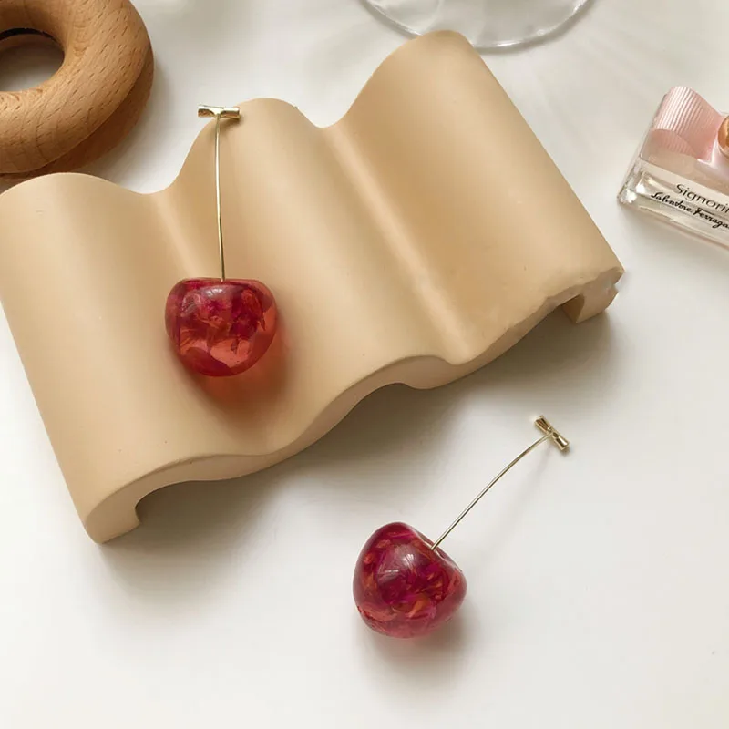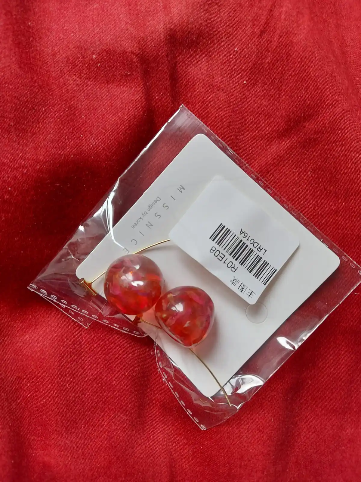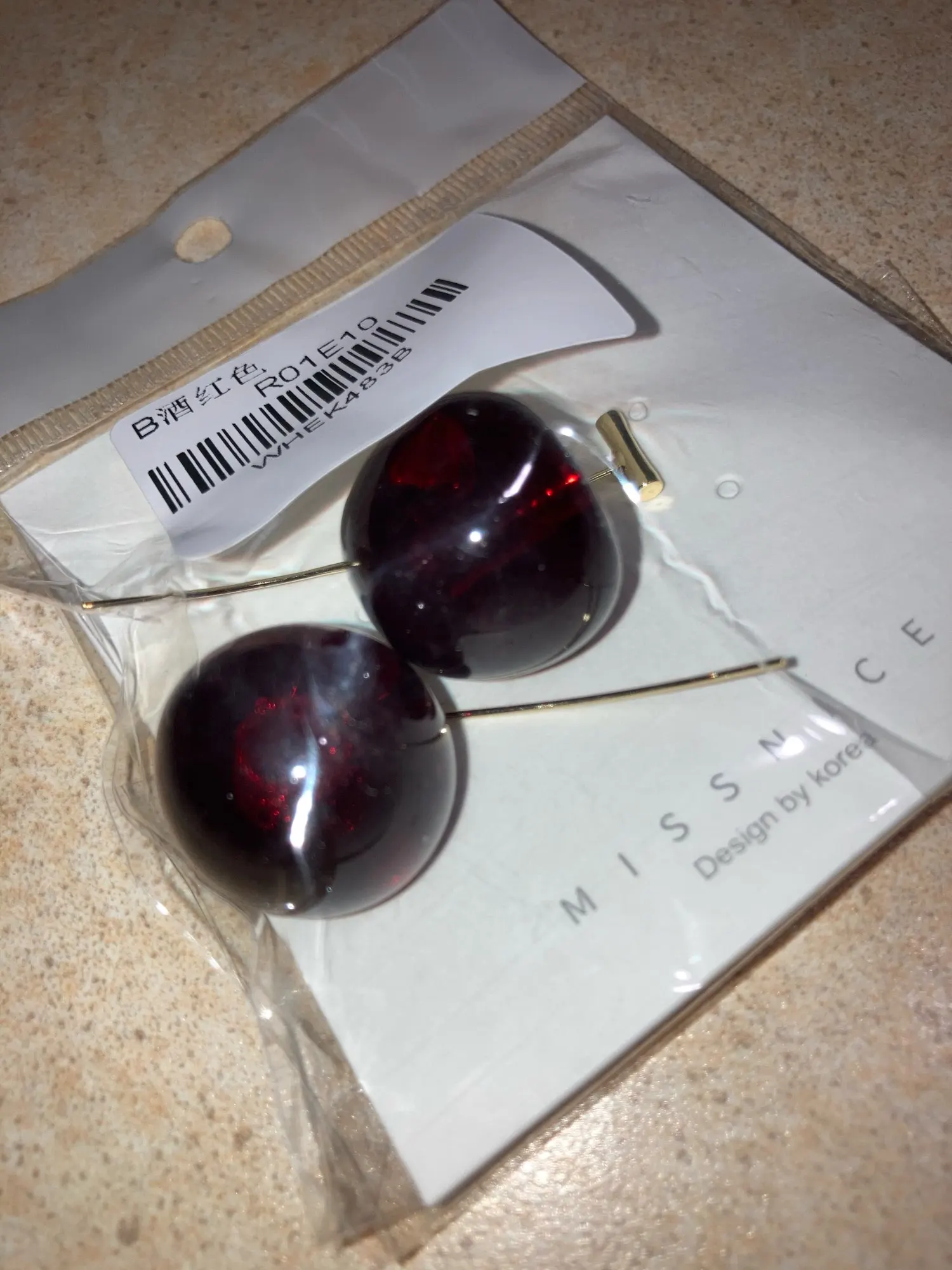 these cherry earrings are so cute and are exactly like the ones I have seen all over social media. it looks like resin with a flower inside, super pretty ❤️