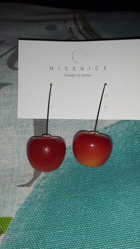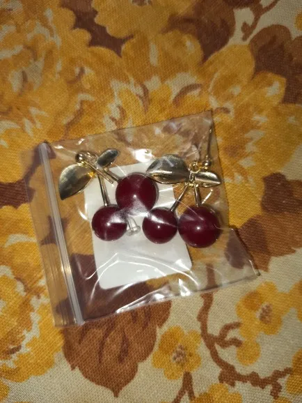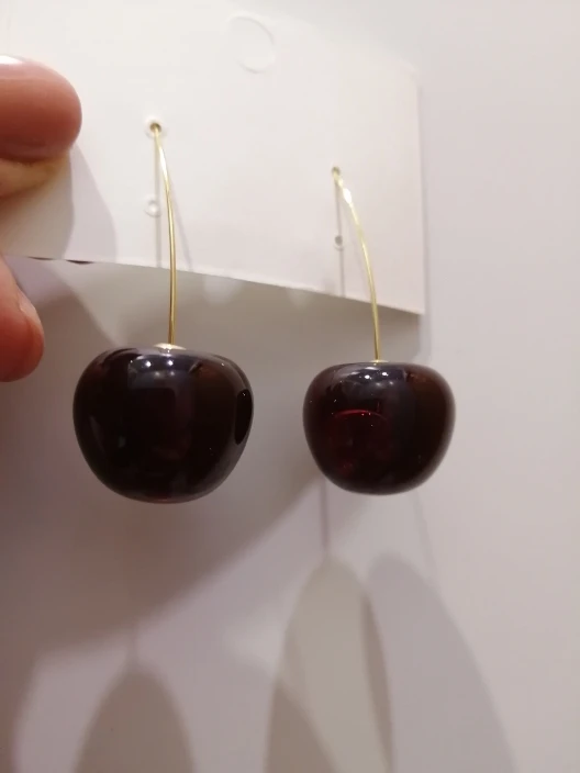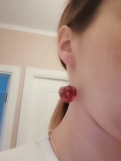 Доставка быстрая, серьги довольно крупные, длинные, тяжёлые для ребенка, лучше на подростка или взрослого. Смотрятся красиво, выглядят натуралистично, как настоящие вишни. Застёжки как таковой нет, "вишенка надевается на веточку", в носке неизвестно как будут себя вести.