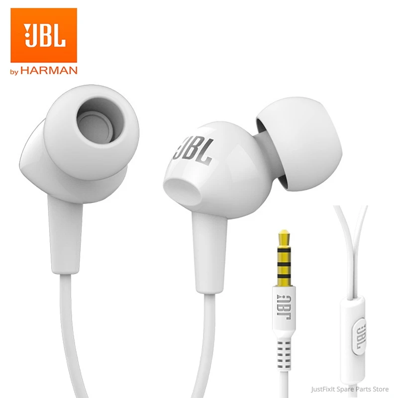 Проводные стереонаушники JBL C100Si 3,5 мм, Hi-Fi спортивные наушники с глубокими басами, гарнитура для бега, наушники с функцией громкой связи и микрофоном