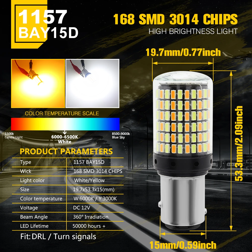 1 пара 1157 BAY15D Белый/янтарный светодиодный лампы