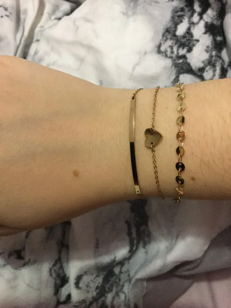 Я люблю этот магазин, и я заказал два браслета, которые я просил. Это не разочаровывает вас, это как на фото. Прекрасно деликатный, но цвет такой, какой он есть, красивый розовое золото, которое с первого дня носило и не становится уродливым. Я не снял его через месяц, и цвет не поврежден. Я даю ему 10.