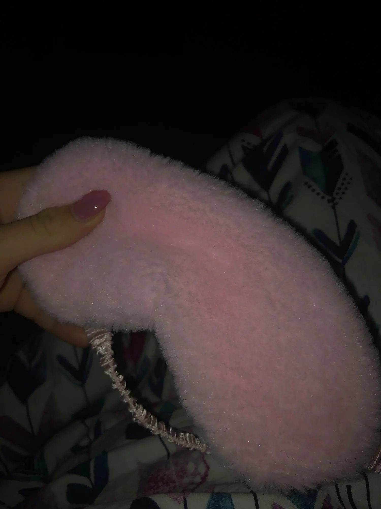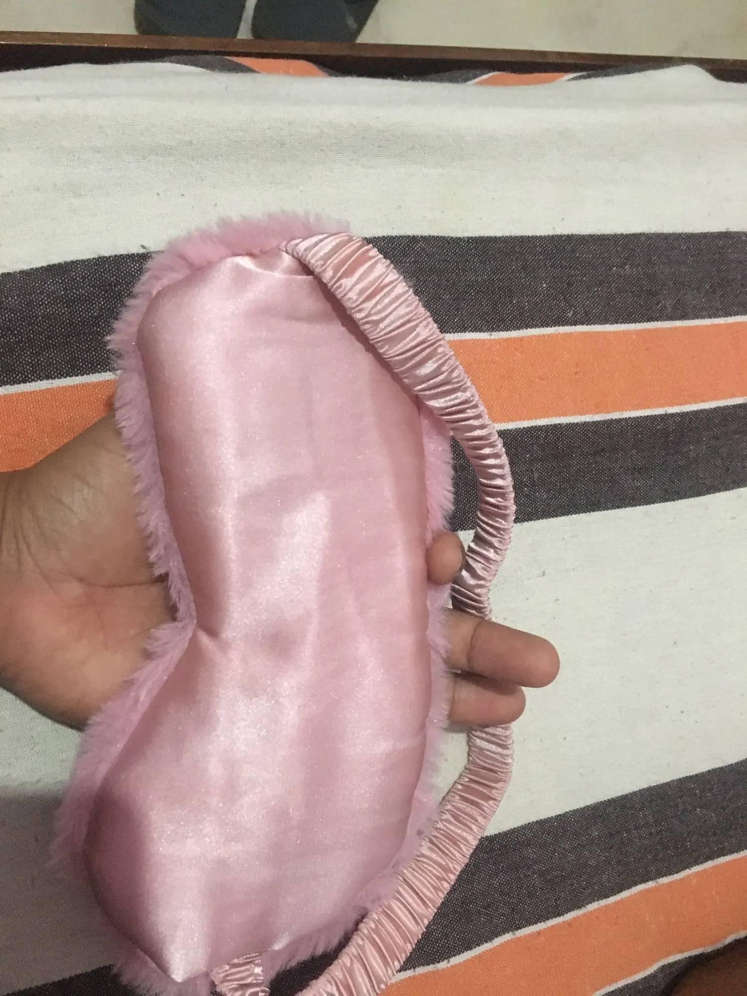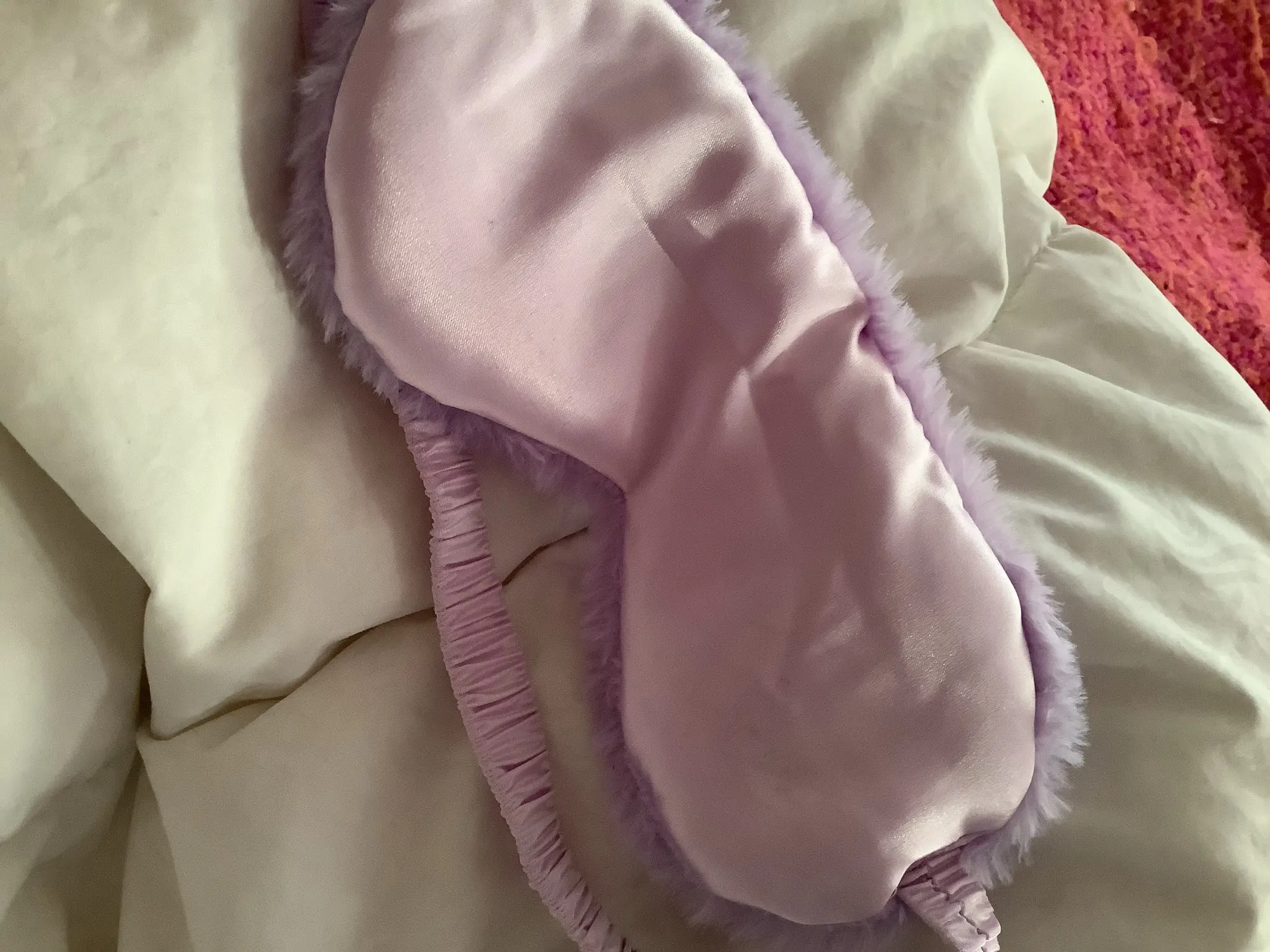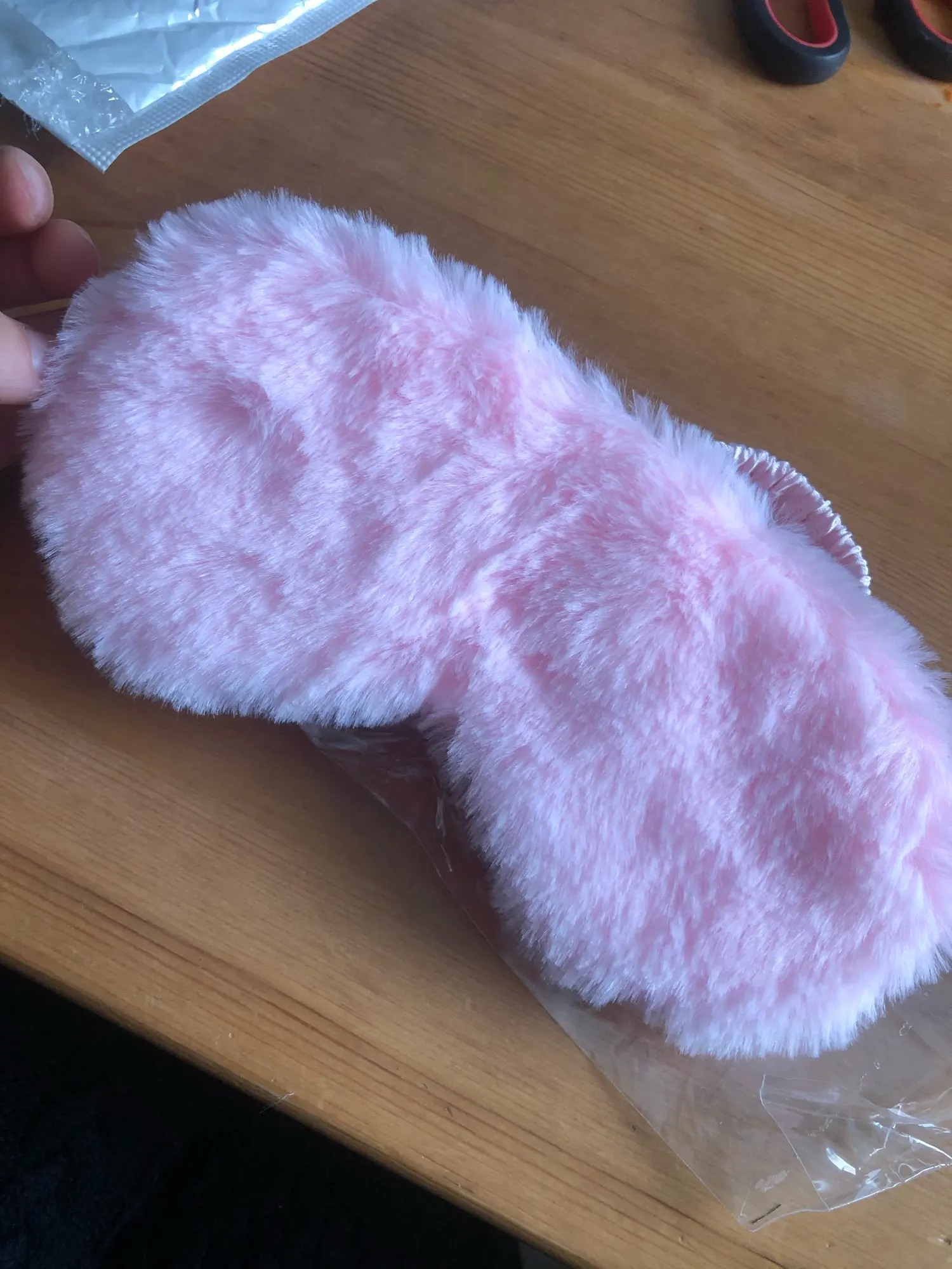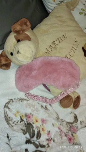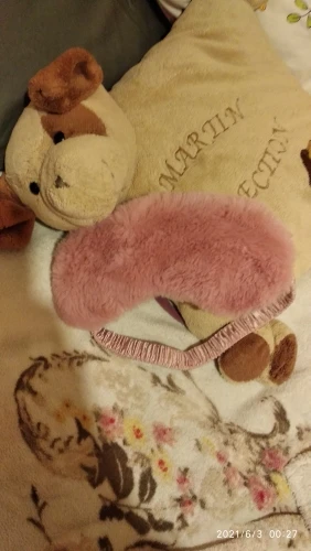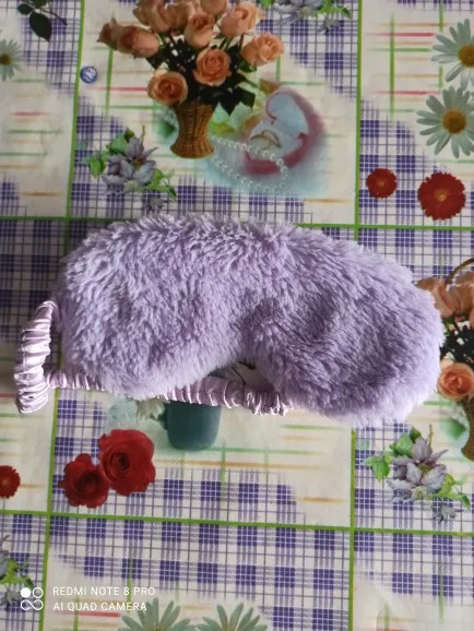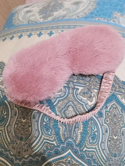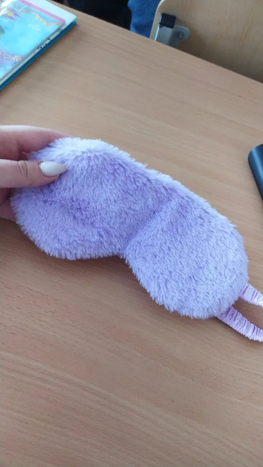 Классная маска, как в описании, мех мягенький, немного лезет. Заказала в двух цветах. Сиреневая понравилась больше, чем розовая по двум причинам: в розовой маске свет ощущается ярче, чем в сиреневой, в которой свет ощущается темнее, (видимо, т.к. она и сама темнее). Еще у сиреневой приятнее резинка, помягче, а у розовой маски резинка оказалась туже и давит на лицо, хотя длина резинок у обеих масок одинаковая. Придётся как-то расслаблять и перешивать резинку розовой маски. Отправляли товар очень долго, только на 6 день, после оплаты. Прибыл товар за 14 дней, вместе с остальными заказами в пункт самовывоза.