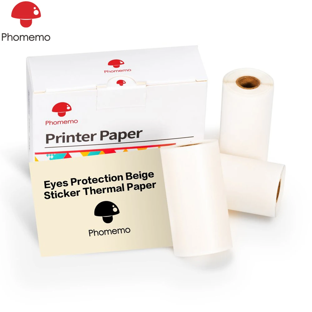 Оригинальная бежевая термобумага Phomemo для защиты глаз для фотопринтера Phomemo M02 Pocker 50 мм x 3 м, 3 рулона термобумаги