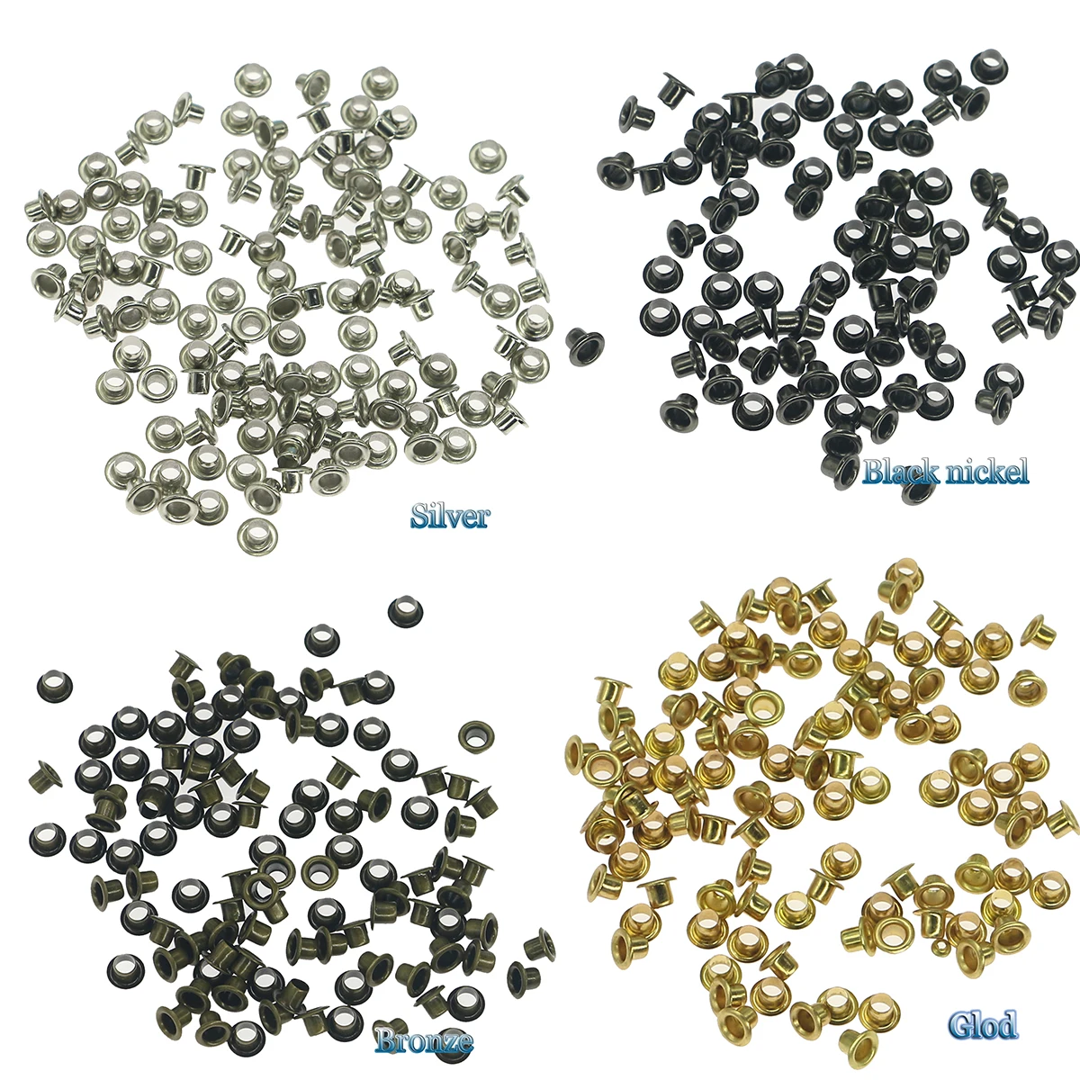 СпецификацияРазмер: 3,3.5,4, 4,5, 5 мм(Диаметр фланца)Сочетание: (люверсы и шайбы)Доступные цвета: черный никель, серебристый, бронзовый, золотой