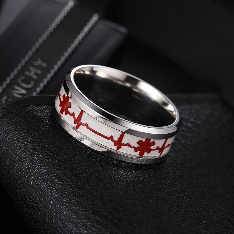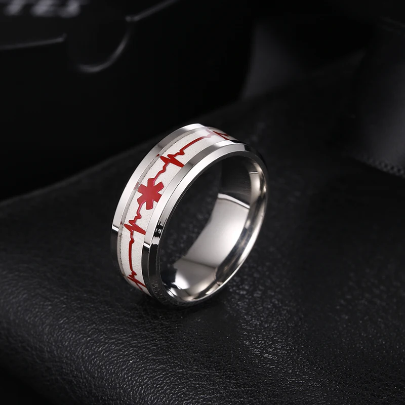 Кольцо унисекс из нержавеющей стали, светящееся кольцо EMT star of life, для мужчин и женщин