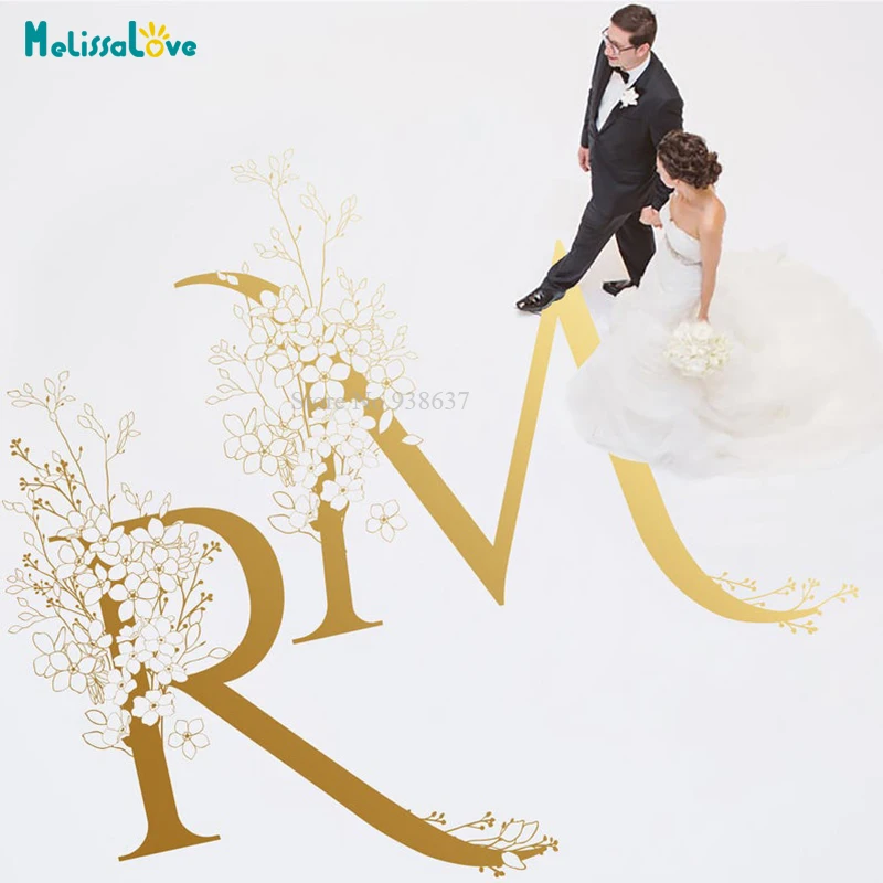 Персонализированные наклейки, красивые цветы, свадебные напольные наклейки, оригинальный танцпол, декор для свадебной вечеринки, Постер BA852