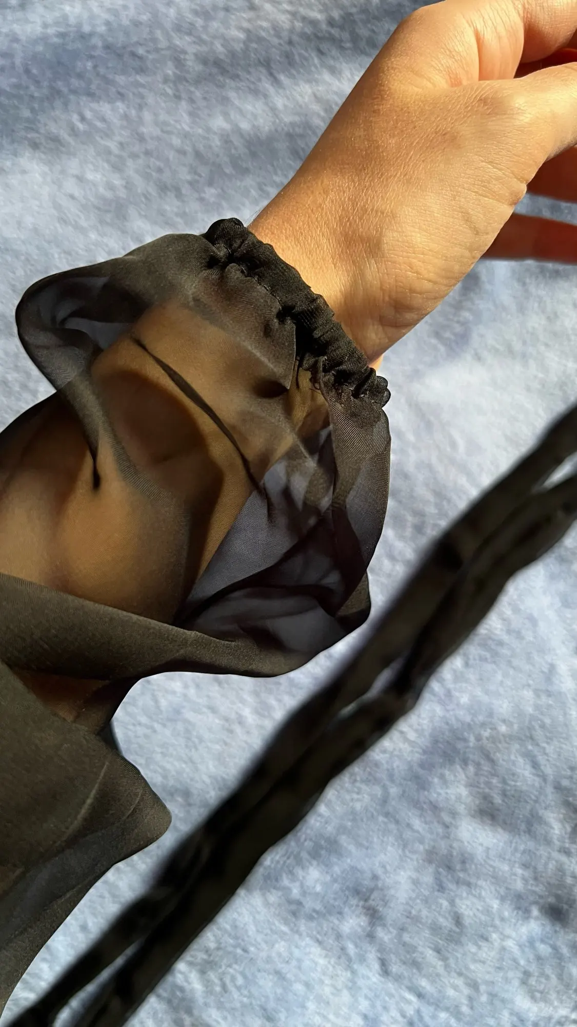 в целом это смотрится красиво и интересно. ткань похожа на органзу больше, чем на шифон. мне бы хотелось, чтобы это был шифон помягче. швы не очень аккуратные, но это не критично. на свой размер M, заказала S/M в принципе сидит номально, но думаю лучше взять на размер больше. в целом я довольна покупкой спасибо продавцу