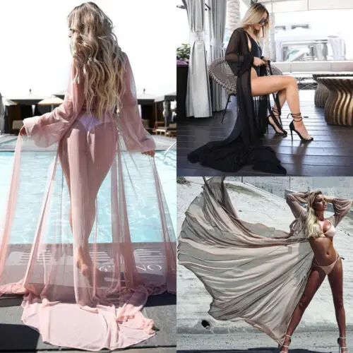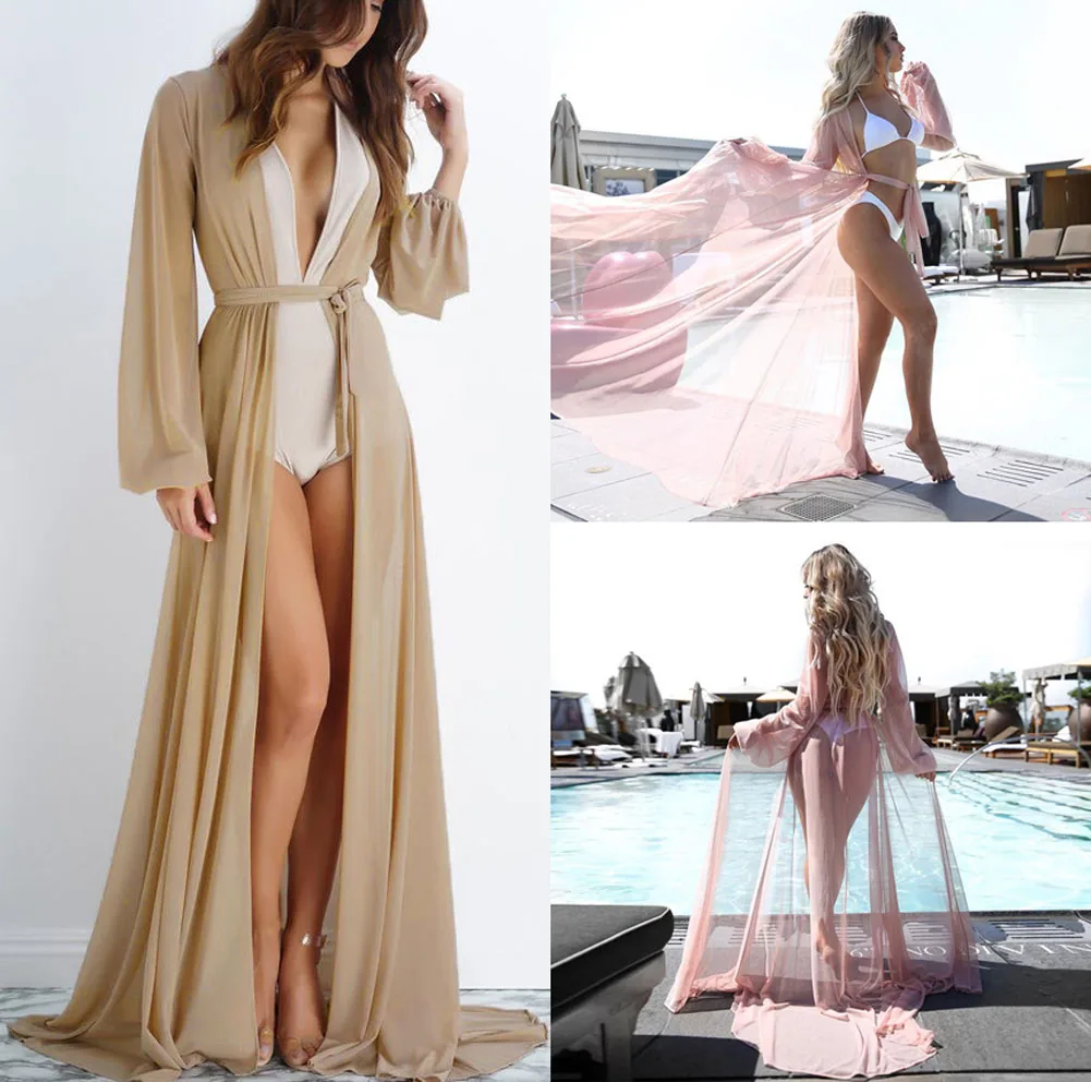 Женское прозрачное пляжное платье-макси, Пляжная туника-накидка для бикини, шифоновый женский купальный костюм, лето 2020