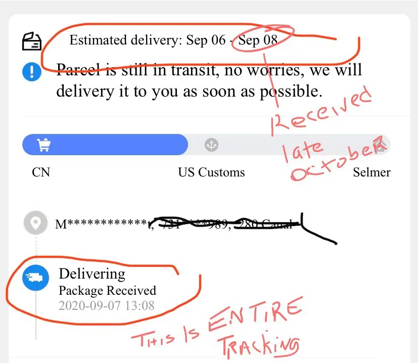 Продавец гарантирует доставку в течение 2-5 дней. Мой занял 8. Продавец обещает отгрузку в течение 7-20 дней, мой занял почти 60, продавец обещал отслеживание, но отслеживание показало только дату доставки и ничего больше на любом из 2 заказов. На запросы о помощи было отвечено, и вы будете ждать. Возврат средств не был возможен более 3 месяцев, несмотря на обещания в списке. 5 покупок у других продавцов в тот же день с такими же обещаниями сохранили свое слово. К сожалению, товары были приемлемы и хорошо упакованы, но я бы даже не стал считать покупку у этого продавца снова.