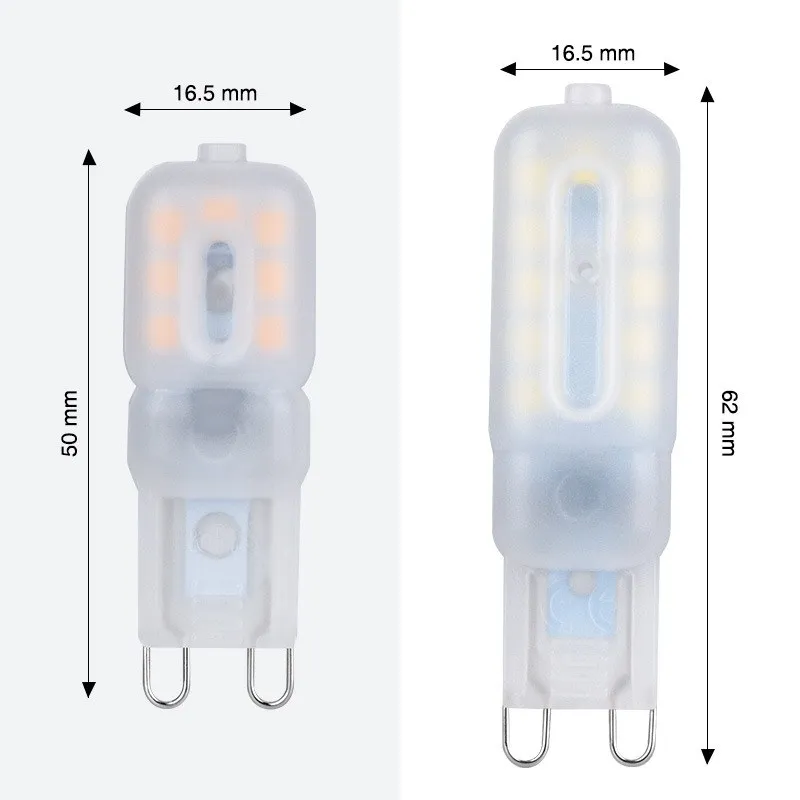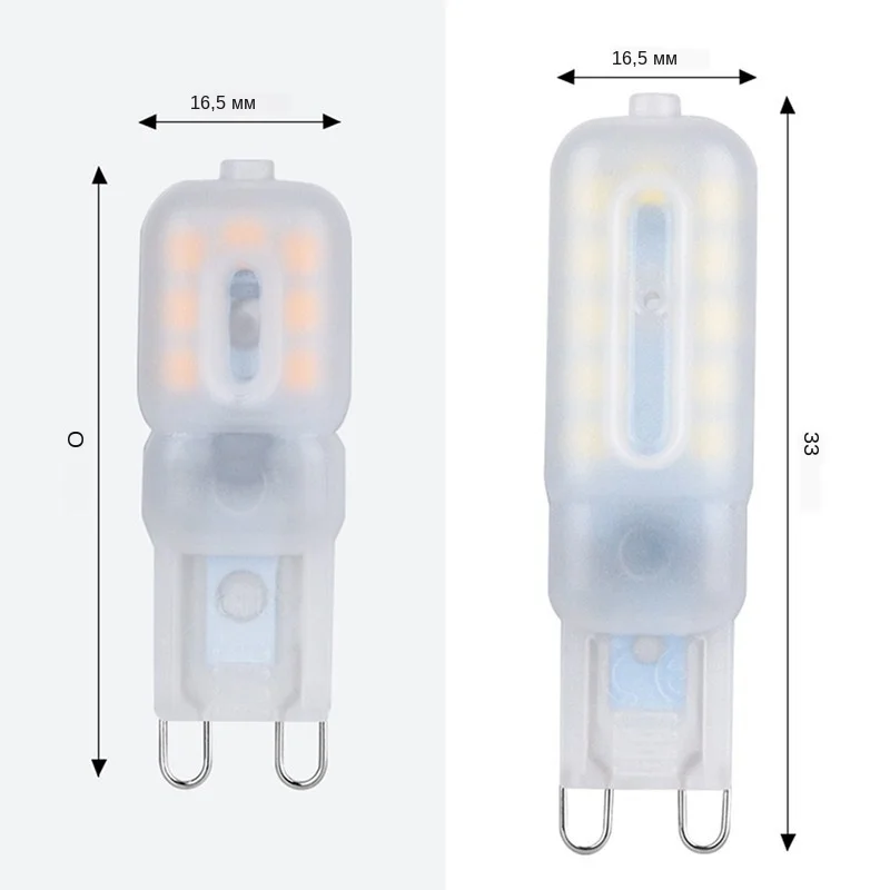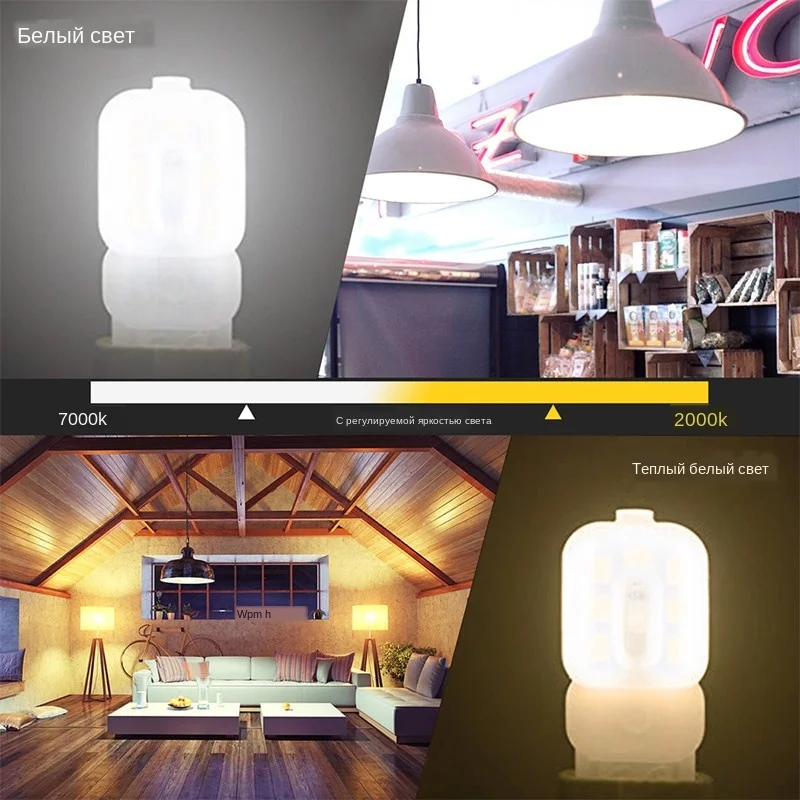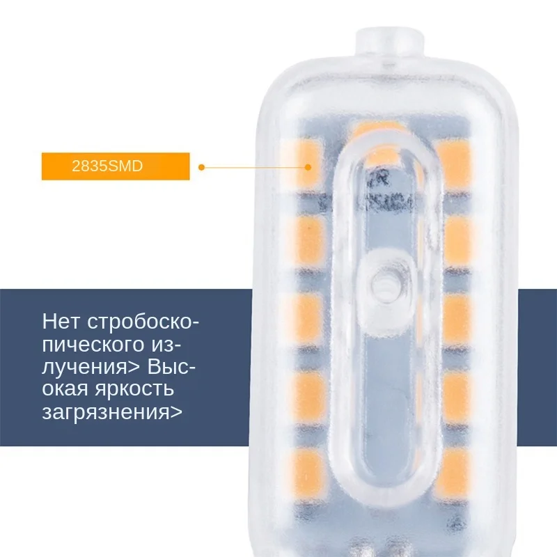 Цвет: теплый белый/холодный белый Цветовая температура: 2800-3500K/5800-6500K Напряжение: 200 В-240 В переменного тока Мощность: 3 Вт/5 Вт/7 Вт Светодиодный чип-Модель: SMD 2835 Светодиодный Кол-во: 14 шт/22 шт Поверхность: прозрачный ПК и молочный ПК Тип разъема: G9 G4 Угол освещения: 360