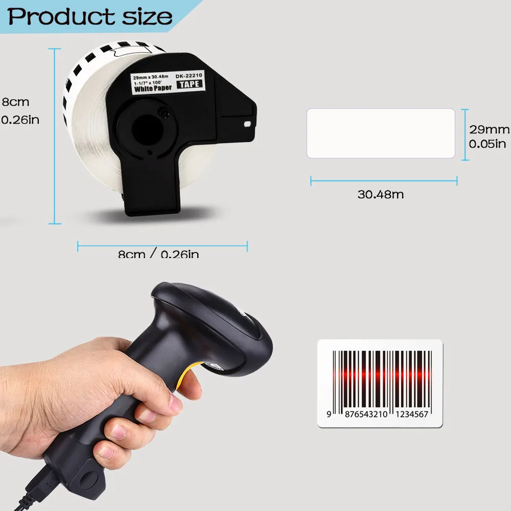 Информация о продукте:Модель: для Brother DK этикетки (с держателями) DK-22210 DK-22210Цвет: черный на беломШирина: 29 ммДлина: 30,48 мПосылка: 1 рулон (DK22210)Совместимый принтер:QL-500, QL-550, QL-570, QL-570VM, QL-580N, QL-650TD, QL-700, QL-710W, QL-720NW, QL-800, QL-820NWB, QL-810w, QL-1050N, QL-1050, QL-1060N, QL-1100 , QL-1110NWB
