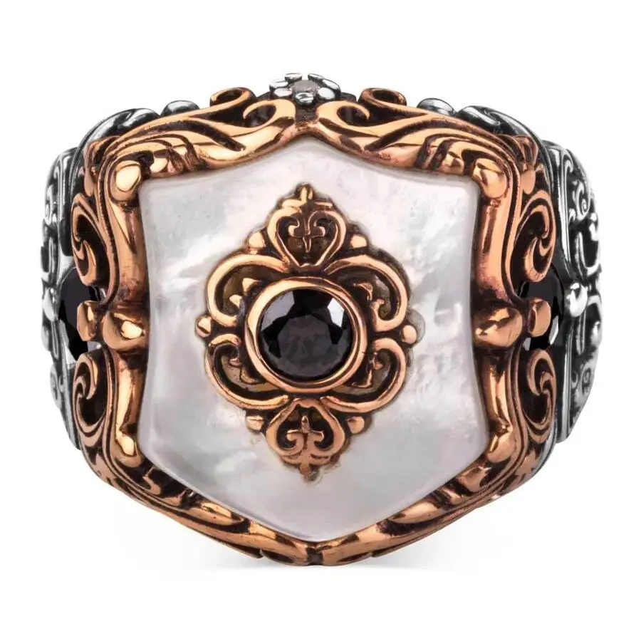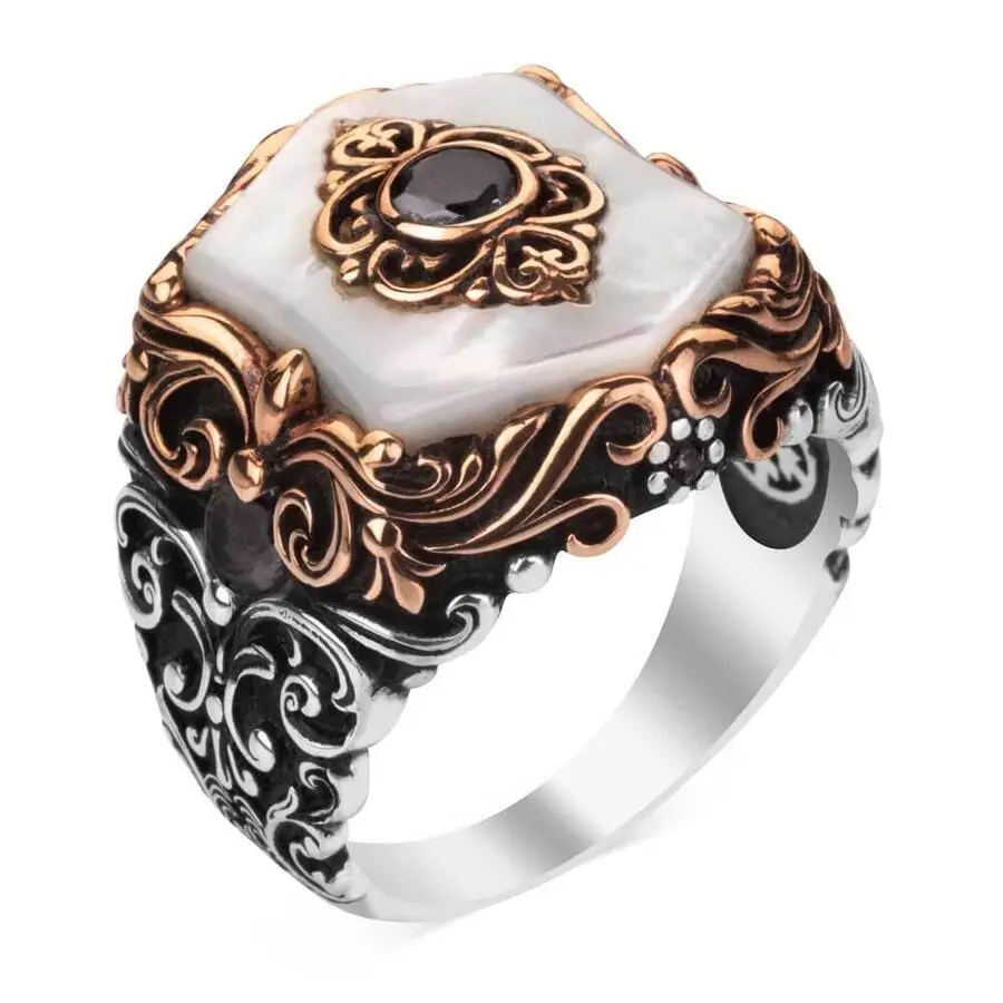 Белый перламутровый камень, Серебряное османское кольцо с флагами, ...