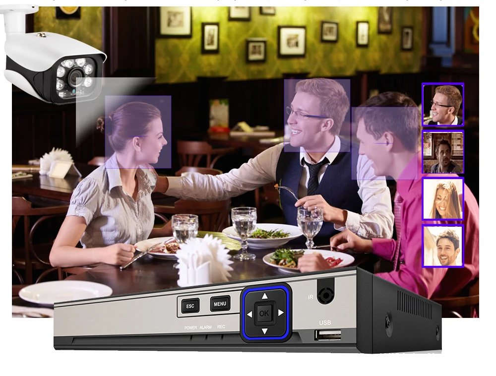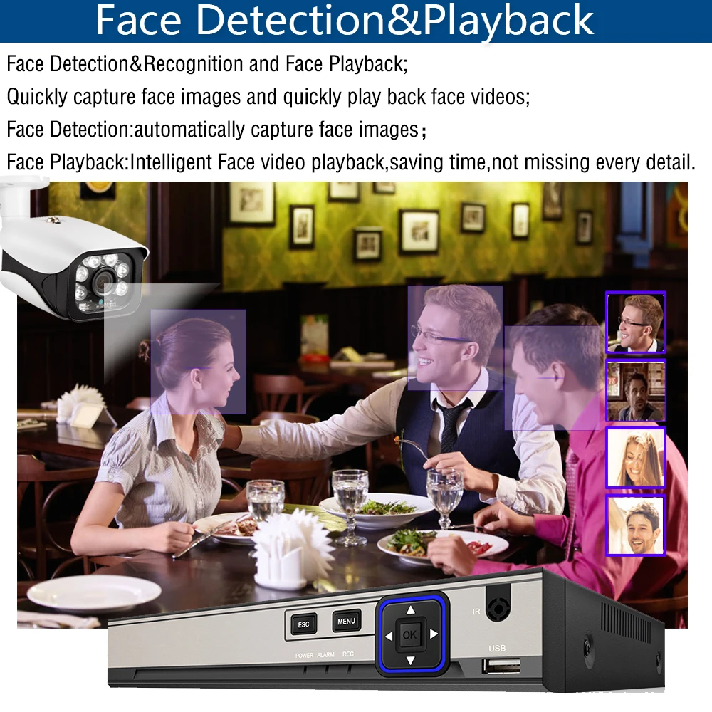 3. Наш NVR и камера поддерживают распознавание лица, воспроизведение лица, обеспечивает ультра высокое разрешение видео наблюдения, обеспечивая максимальную детализацию и четкость доступны;