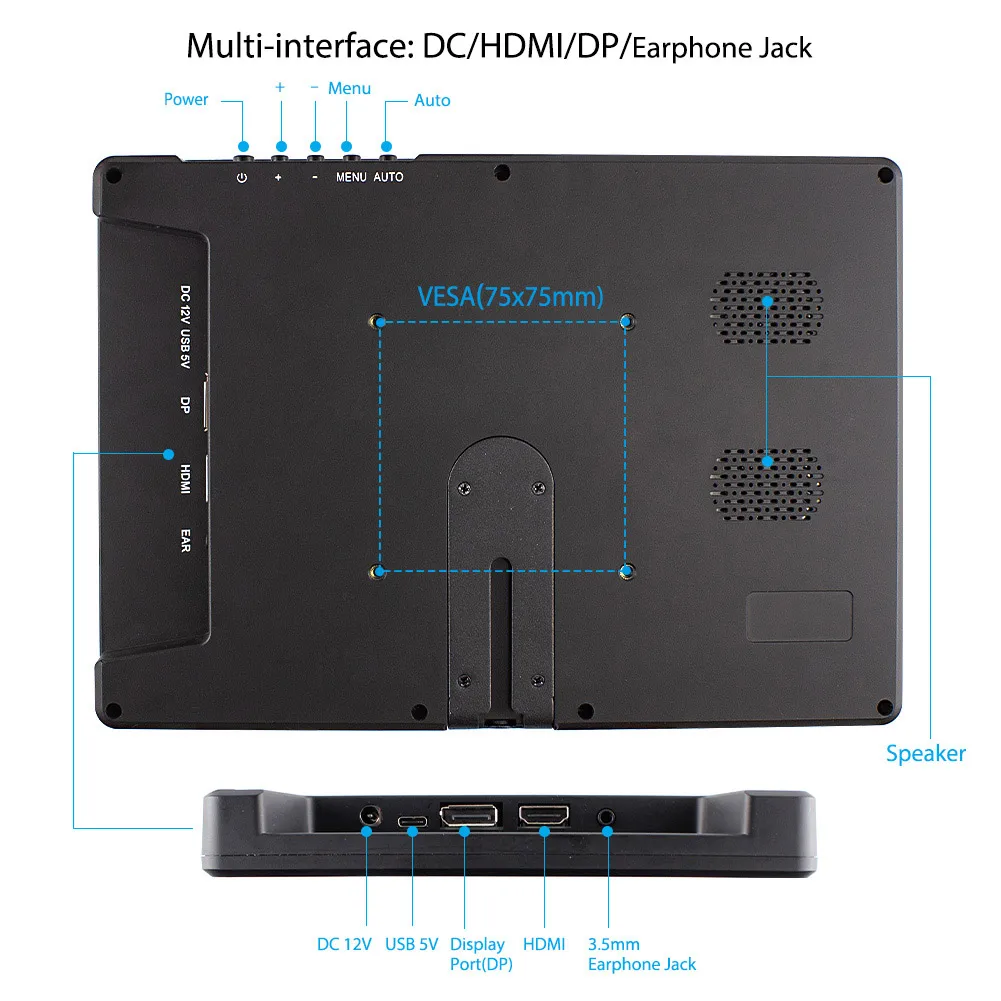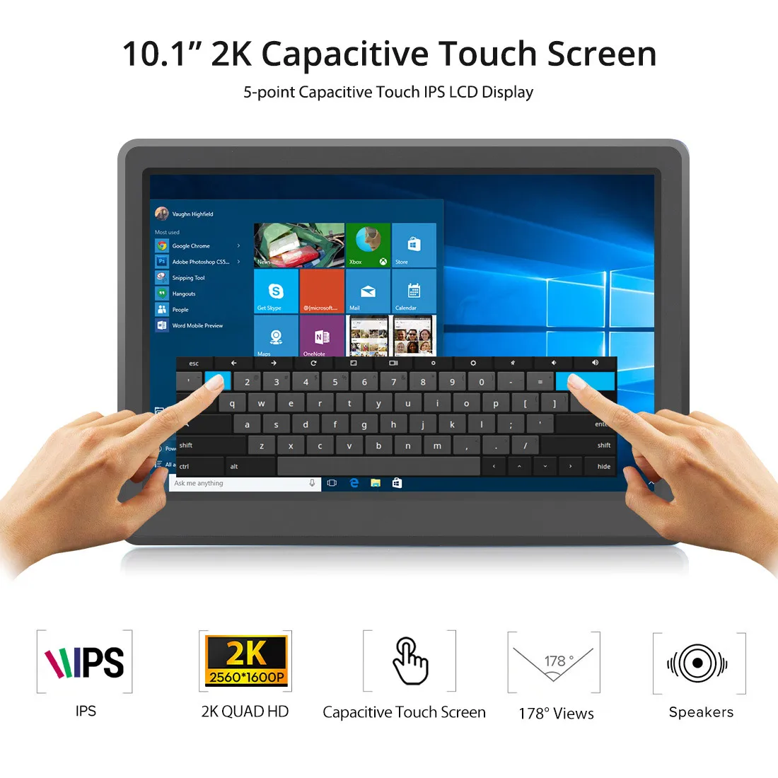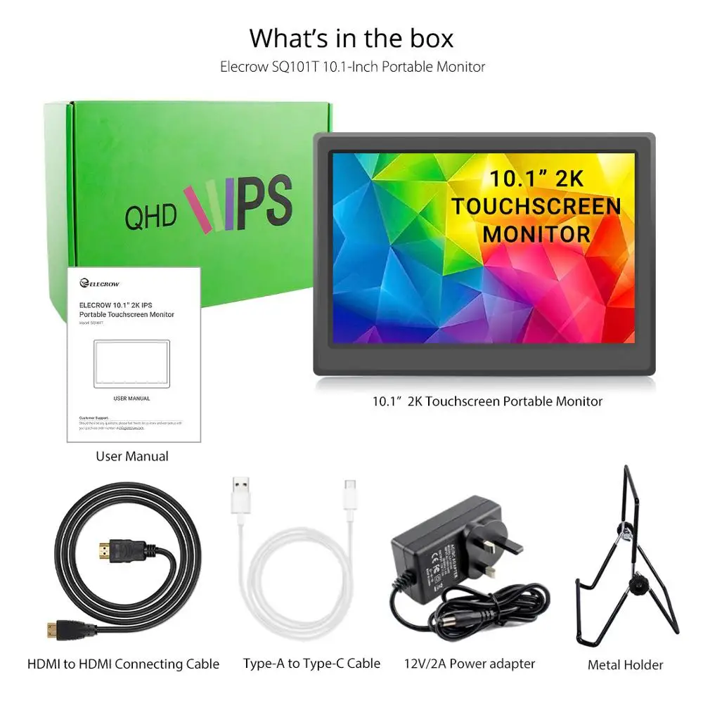 Портативный монитор Elecrow 10,1 ", сенсорный экран 2K, ёмкость 2560*1600P, IPS дисплей, для ноутбуков, игровых устройств