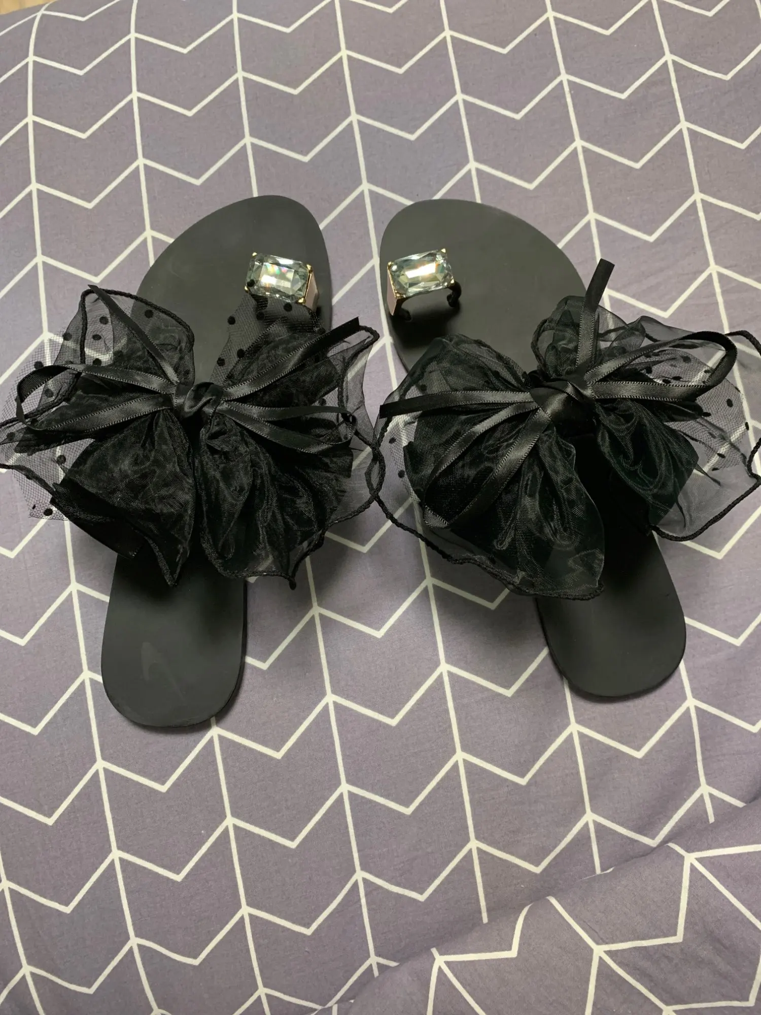 Шлепанцы женские, летние, с бантиком, Нескользящие, на плоской подошве